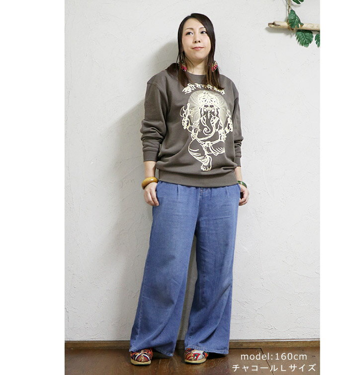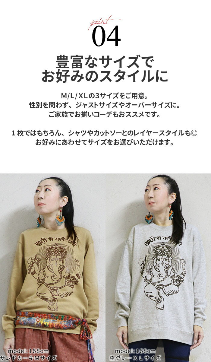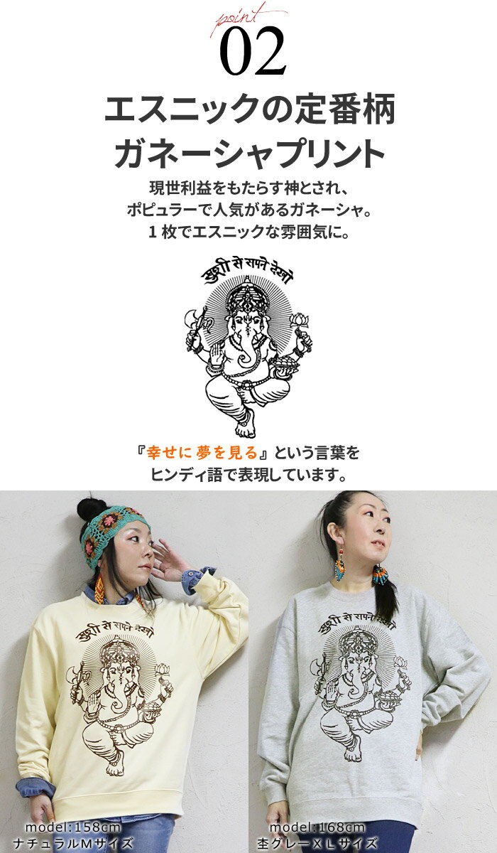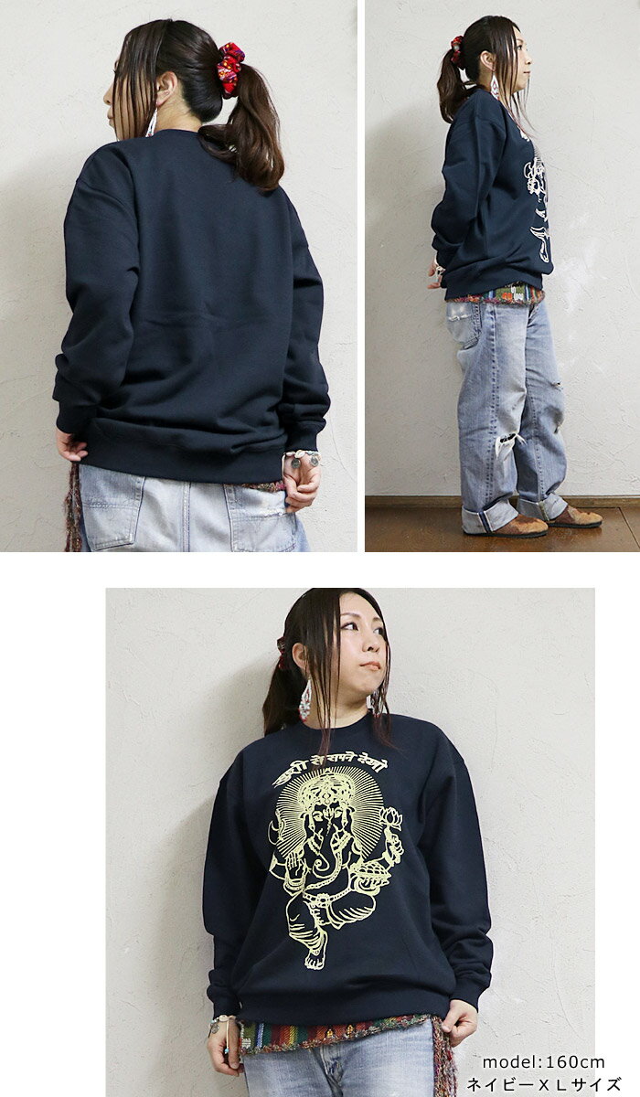\10%OFFセール★1/29 9:59まで/エスニック トレーナー スウェット プルオーバー 裏パイル トップス 長袖 ガネーシャ 神様 ヒンディー ファッション レディース メンズ 男女兼用 ユニセックス ゆったり ユニフォーム 制服≪宅配便のみ≫【2】