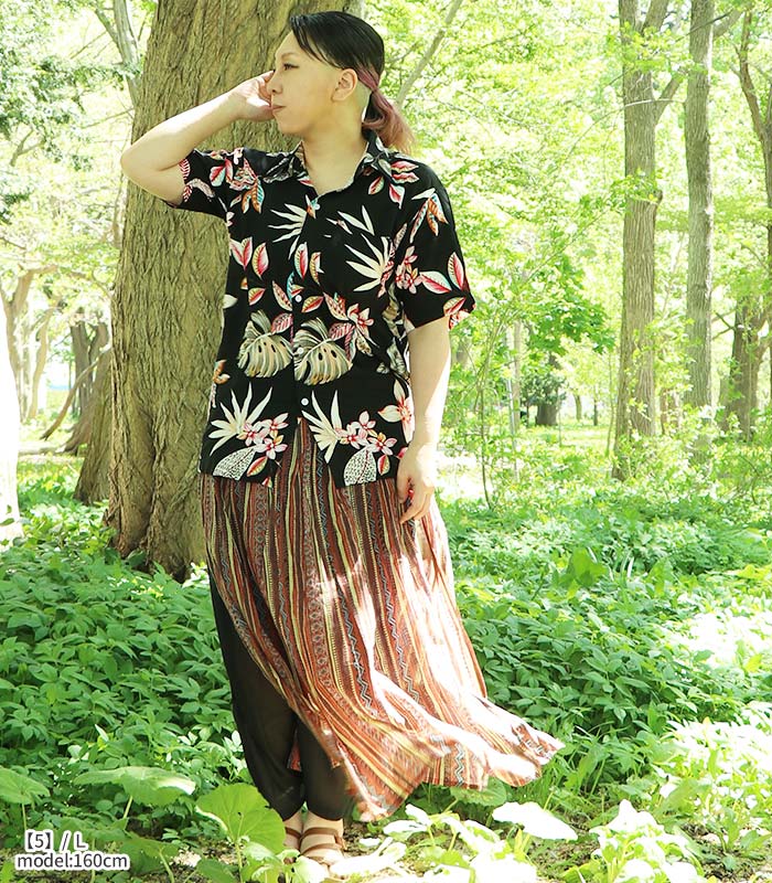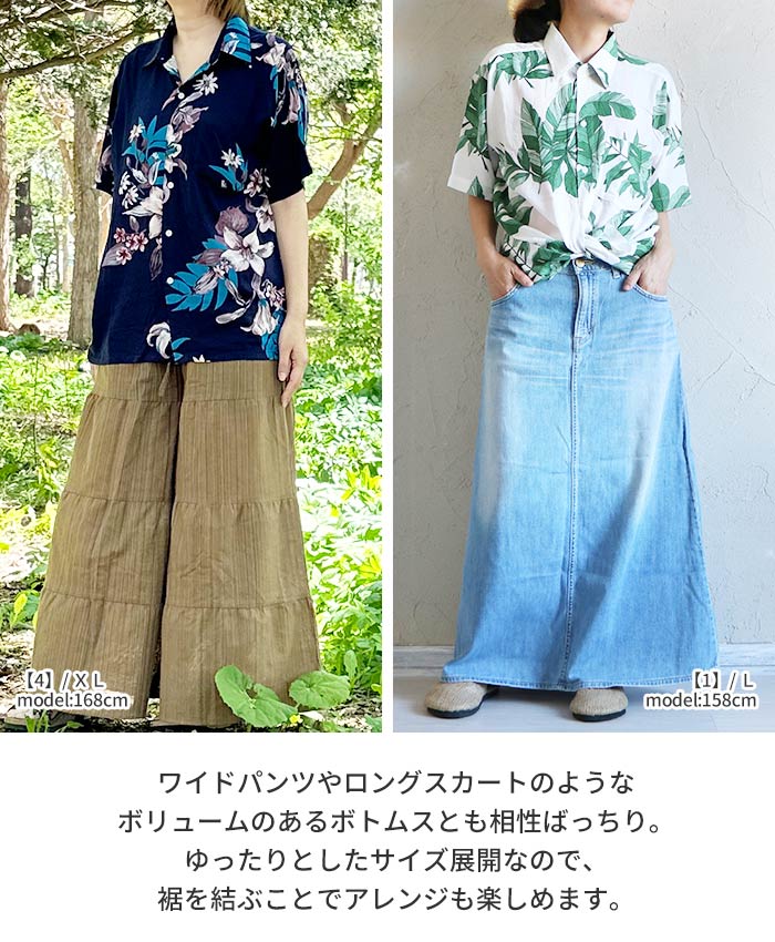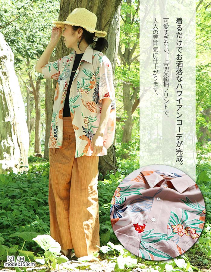アロハシャツ レディース 半袖 カジュアル トップス 前開き 花柄 レーヨン シャツ ハワイ リゾート ボタニカル 葉 総柄 フラワー 涼しい 春 夏 サマー エスニック ファッション 可愛い おしゃれ 【メール便可 1.5cm】【1】