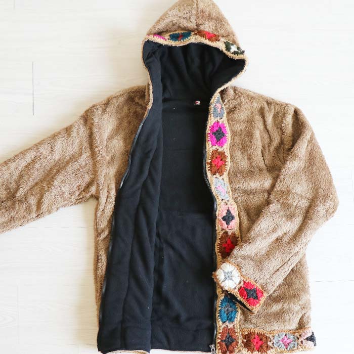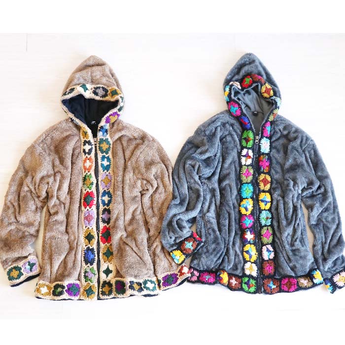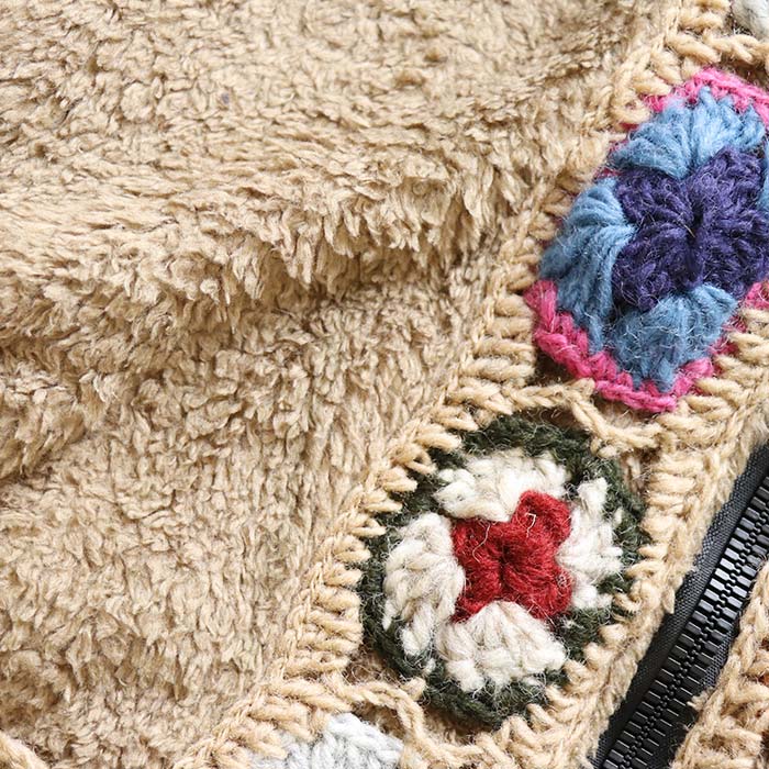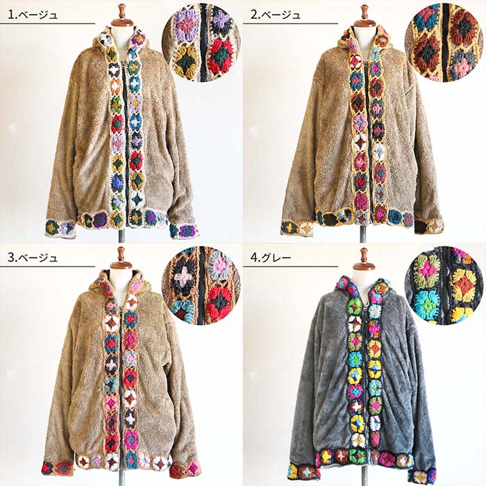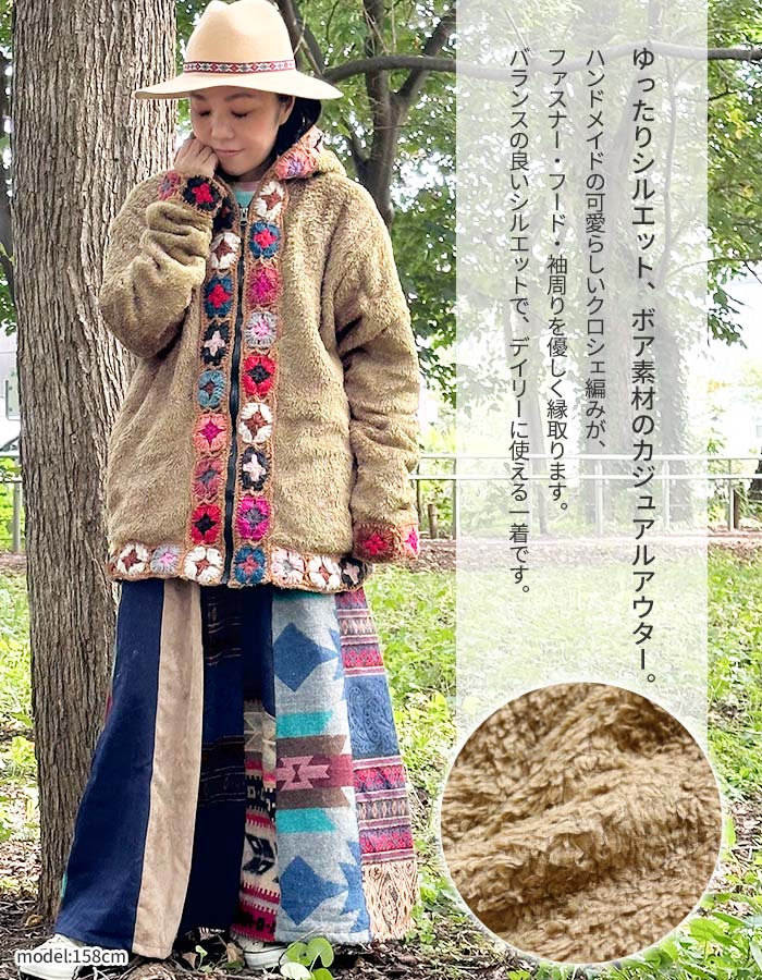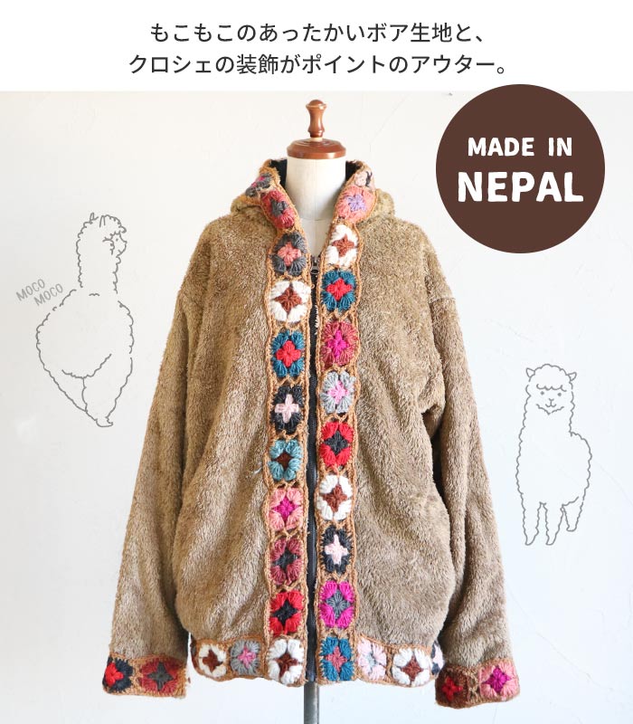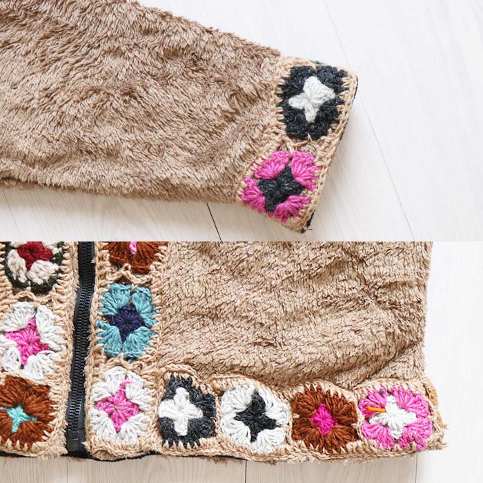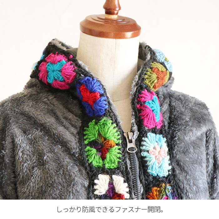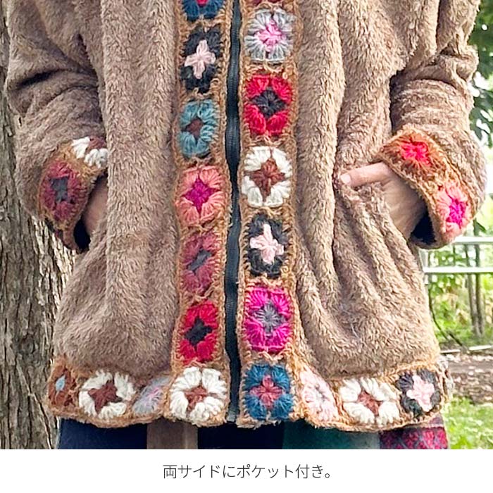 ボア ジャケット エスニック アウター ブルゾン ジップアップ パーカー 裏フリース 山ガール 大人 カジュアル ゆったり レディース ファッション アジアン ネパール 秋 冬 手編み クロシェ 【5】