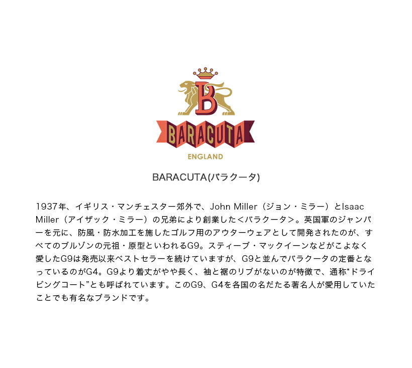 BARACUTA バラクータ CLICKER G9 ハリントンジャケット New Fit メンズ