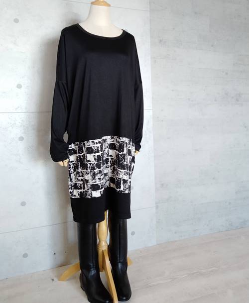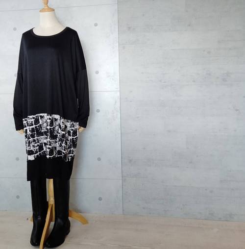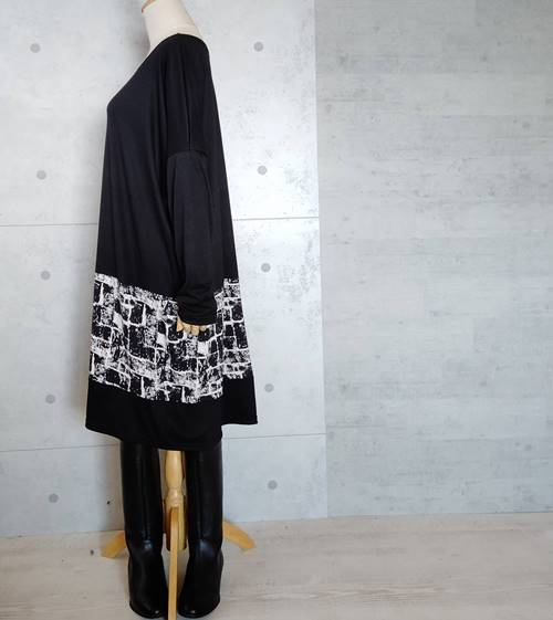 チュニック 40代 50代 春 カットソー ナチュラル 大きいサイズ ワンピー かわいい 長袖 チュニック ワンピース ドルマ大きめ レディー ス 黒 かすれ