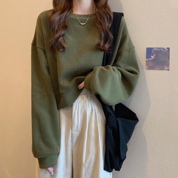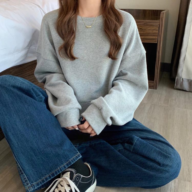 スウェット レディース トップス カジュアル トレーナー プルオーバー クロップド丈 ショート丈 ボリューム袖 春 秋 冬 お洒落 20代 30代 送料無料
