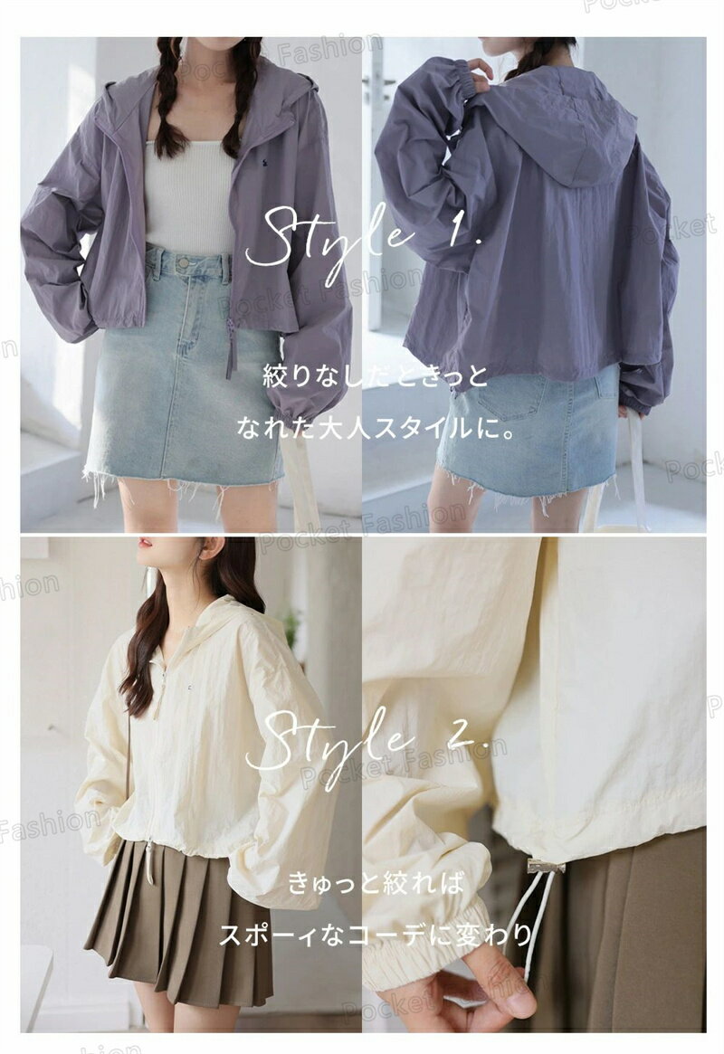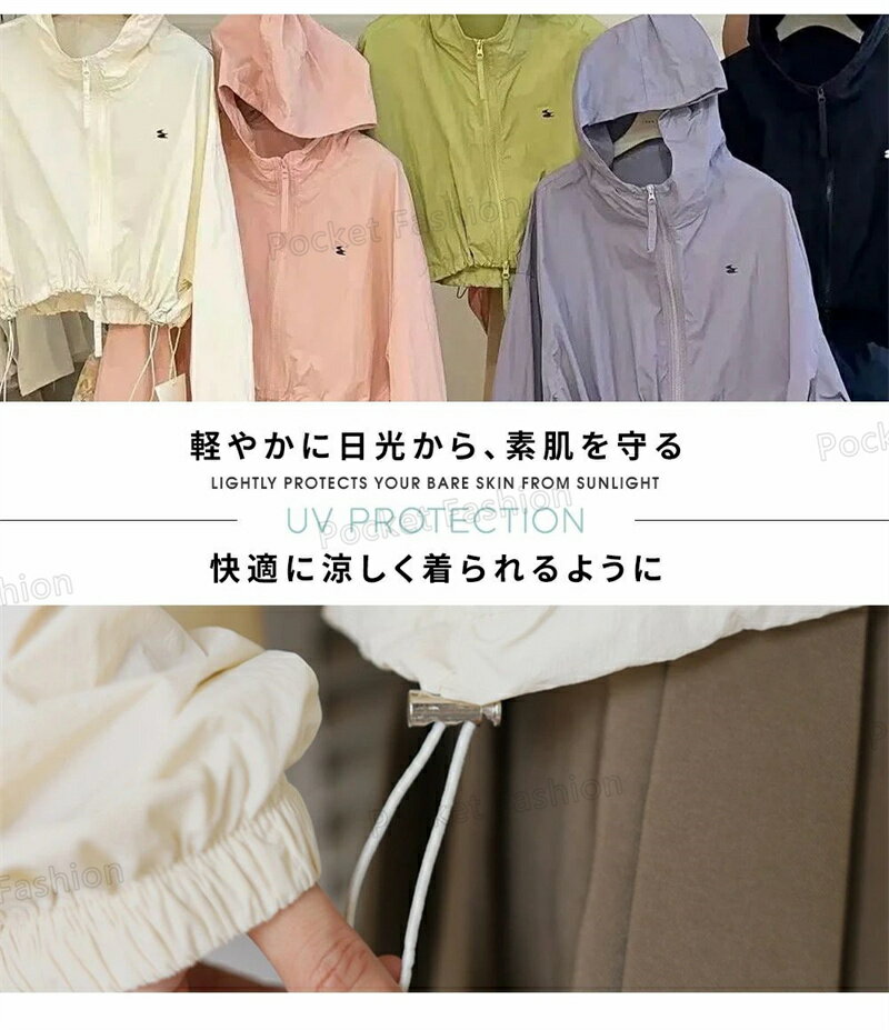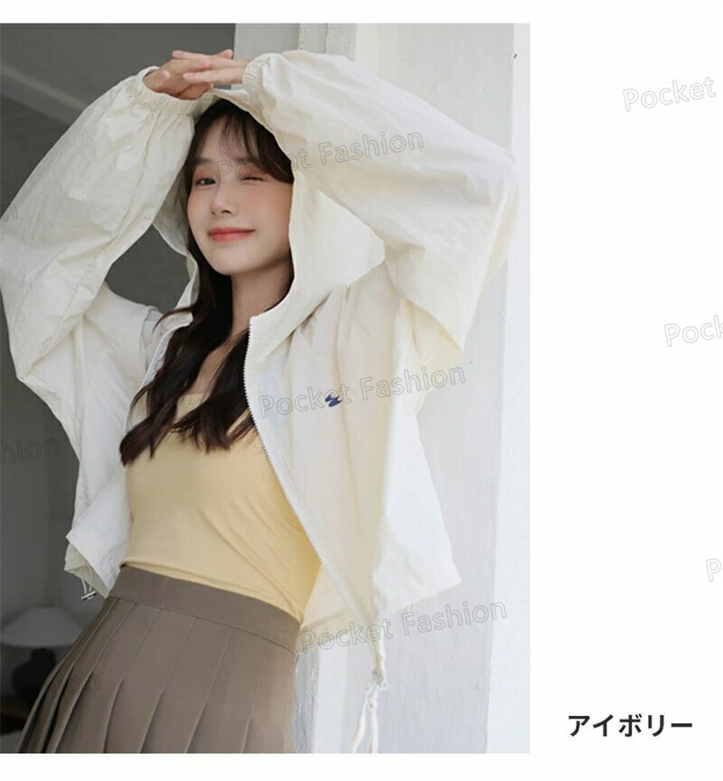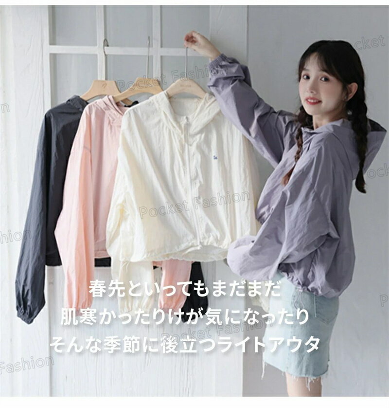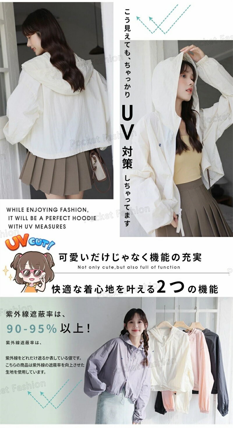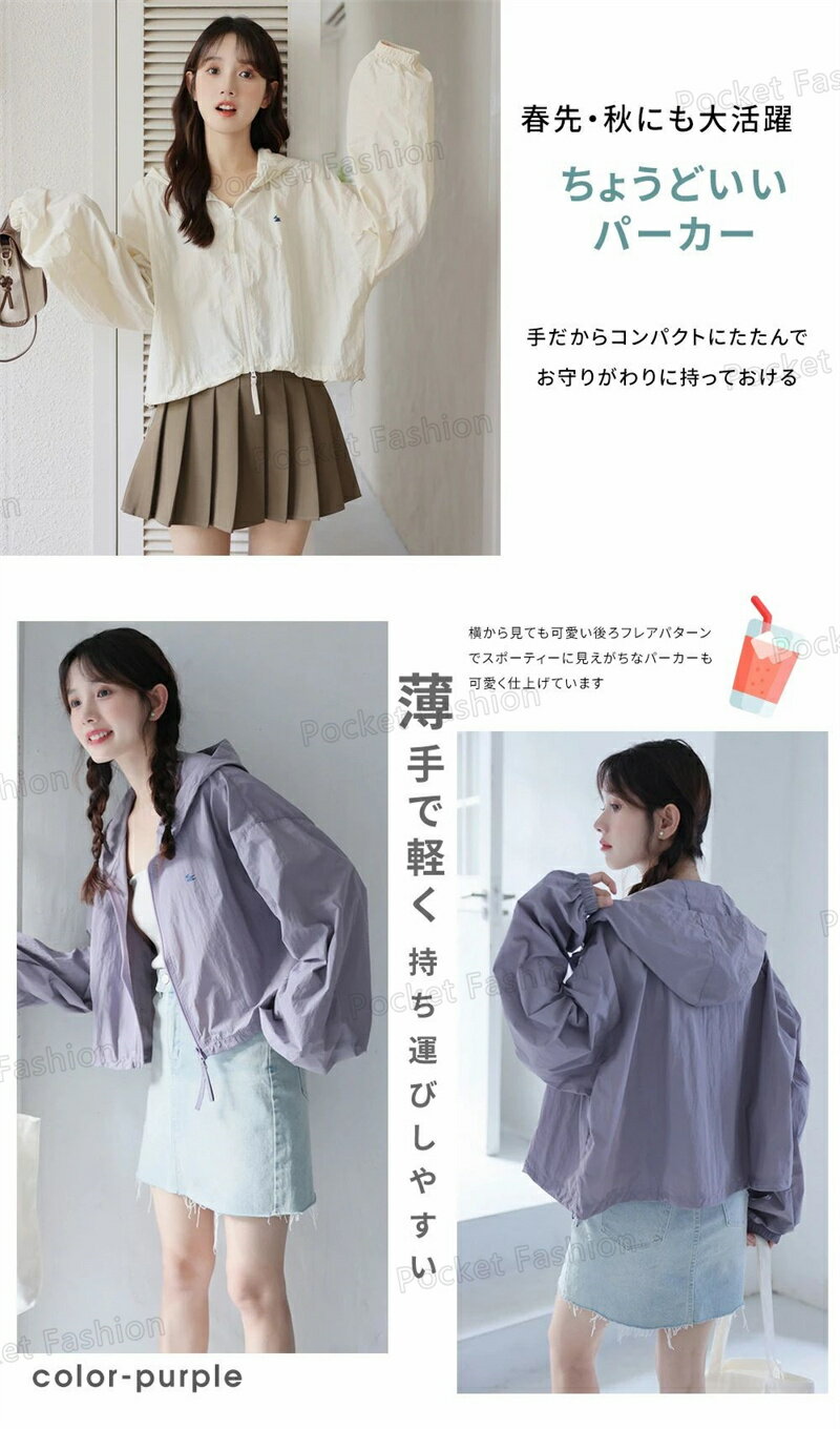 UV パーカー UPF50+ UVパーカー レディース 薄手 UVカット ショート丈 ジャケット 紫外線対策 ブルゾン ダブルジップファスナー カラフル クロップド丈 かわいい おしゃれ 春夏 春 夏 秋