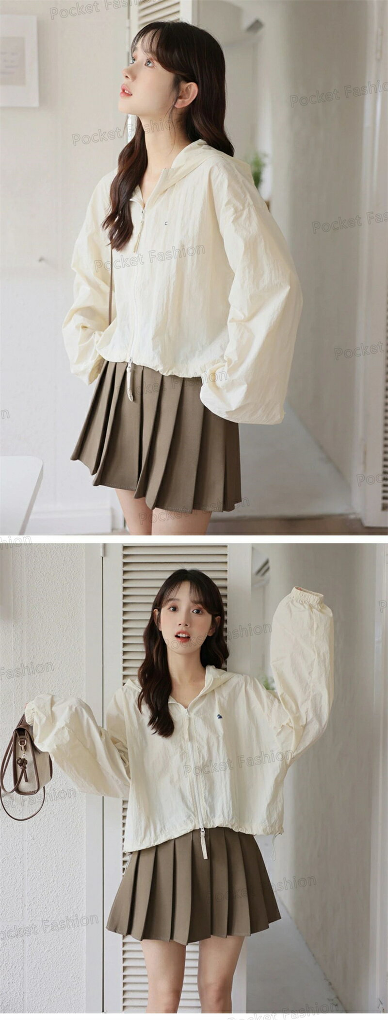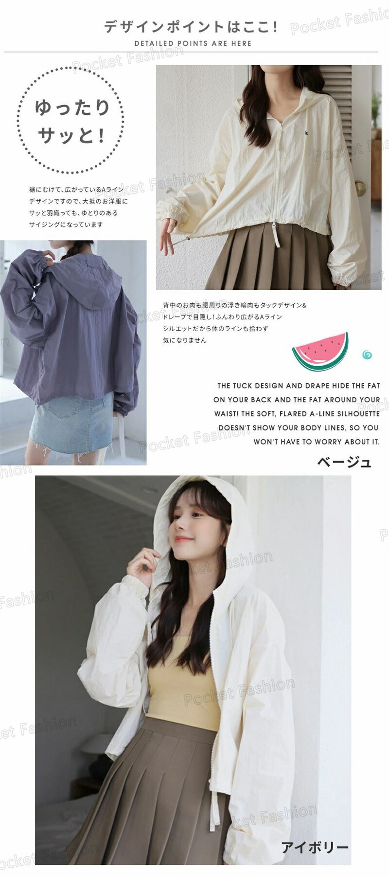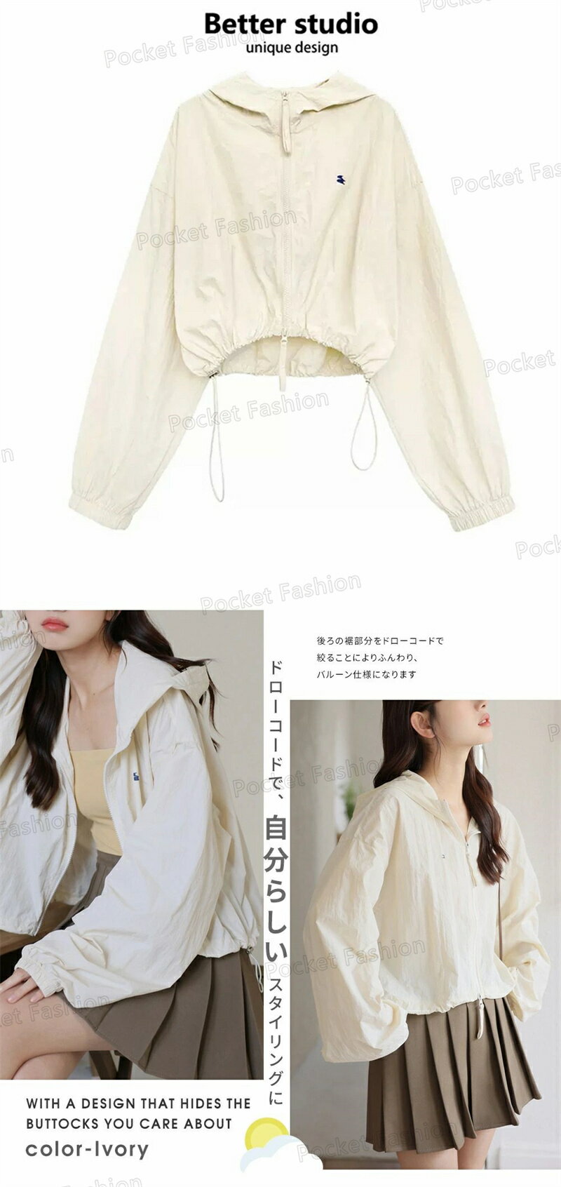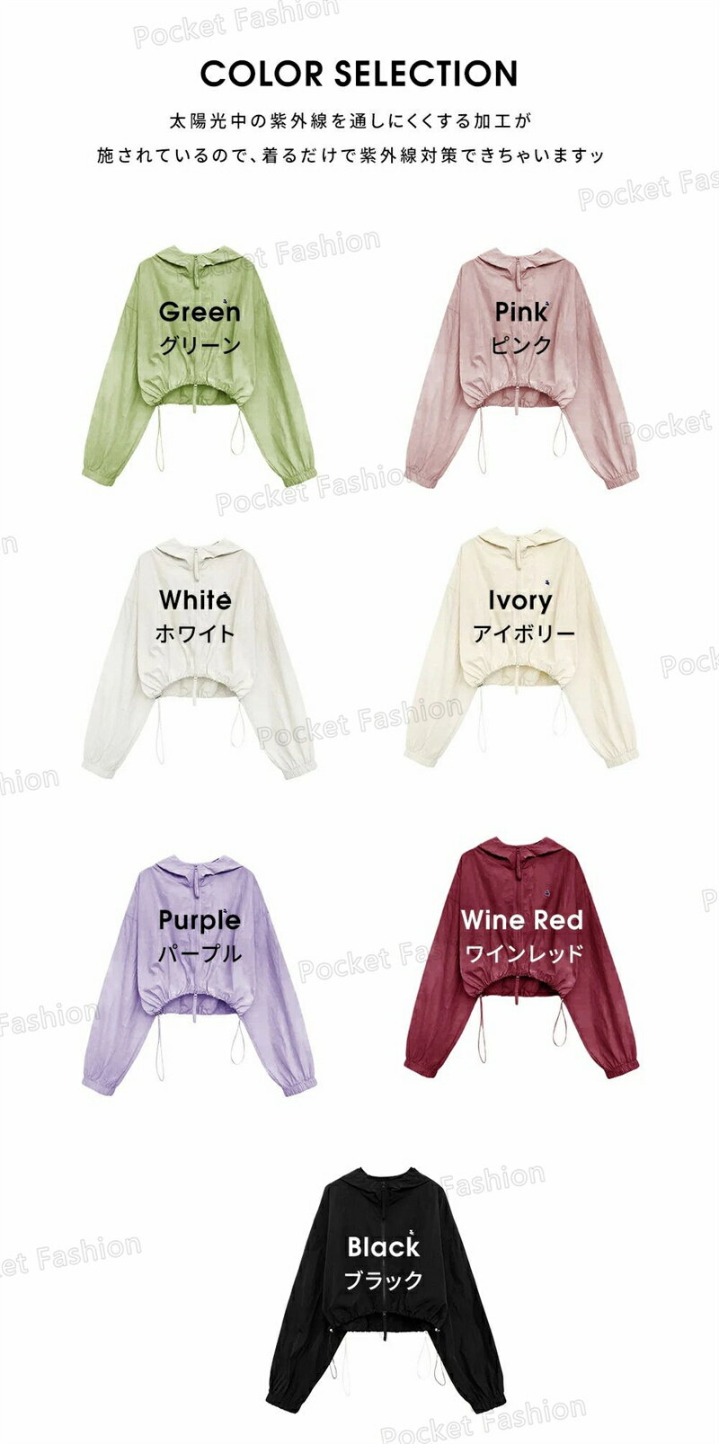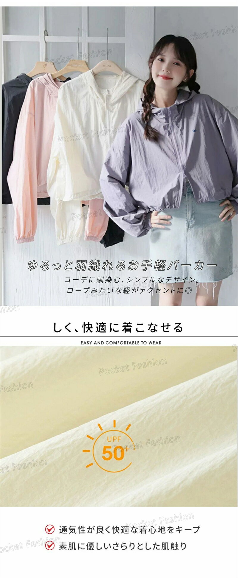 UV パーカー UPF50+ UVパーカー レディース 薄手 UVカット ショート丈 ジャケット 紫外線対策 ブルゾン ダブルジップファスナー カラフル クロップド丈 かわいい おしゃれ 春夏 春 夏 秋