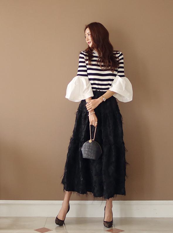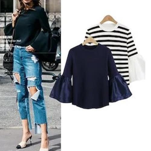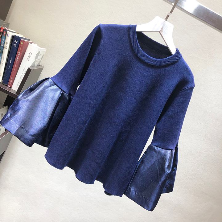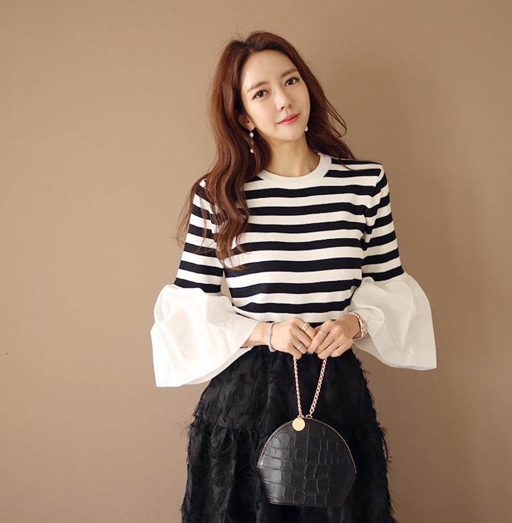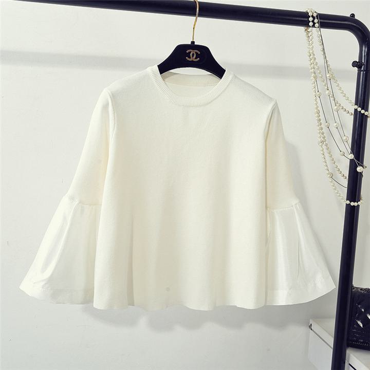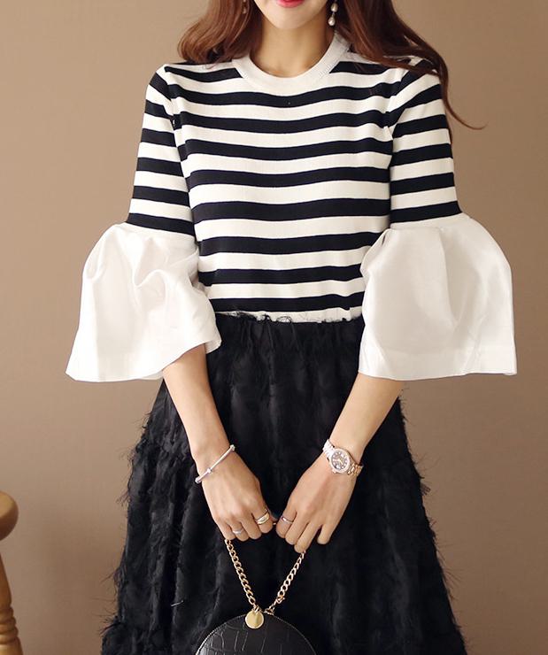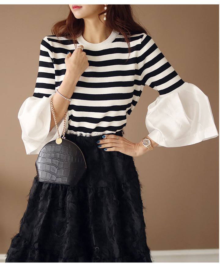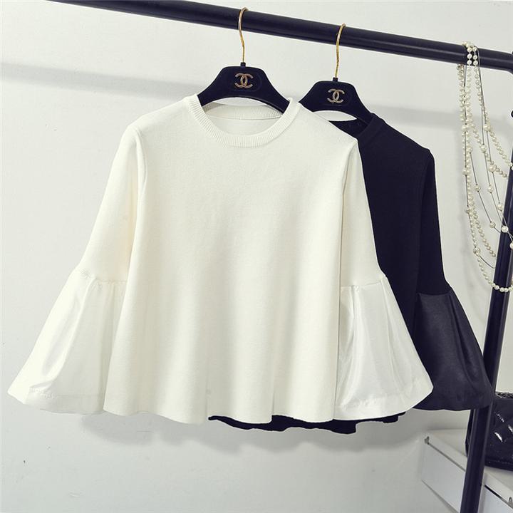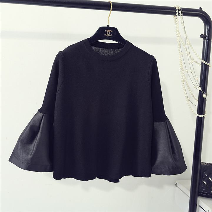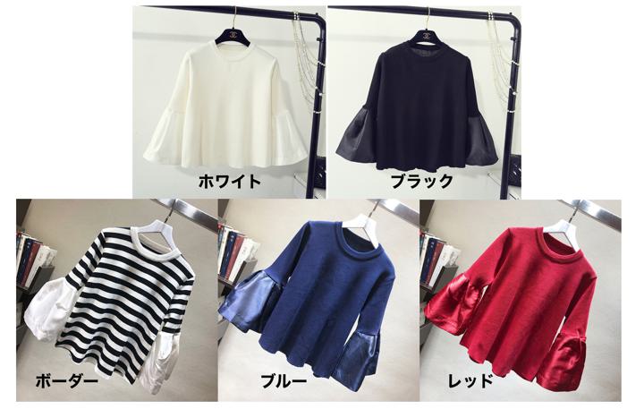 異素材ミックスニットTシャツ ワイドスリーブ プルオーバー ふんわり袖 七分袖 ベルスリーブ フェミニン エレガント おしゃれ トップス レディース トレンド カジュアル 普段着 デイリー 通学 通勤 デート ビジネス オフィス お出かけ ショッピング 女子会5カラー b289
