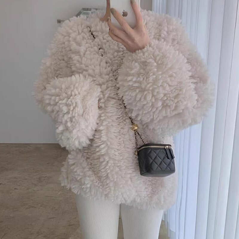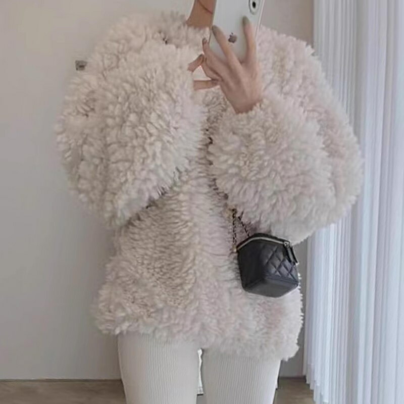 ボアニット トレーナー プードル ファー カジュアル トップス もこもこ ニット セーター トップス レディース 可愛い オーバーサイズ 秋冬 2カラー C305
