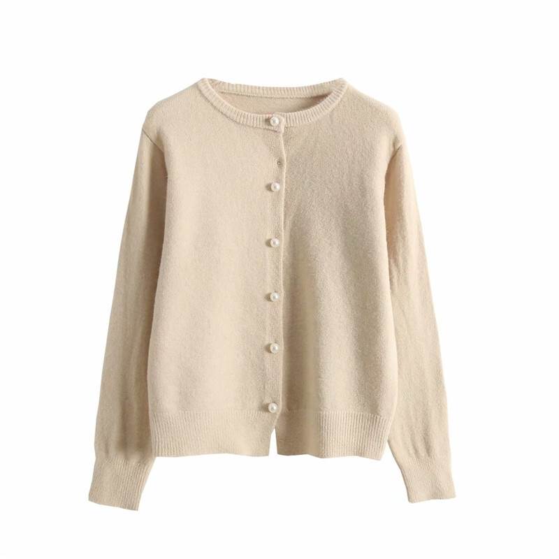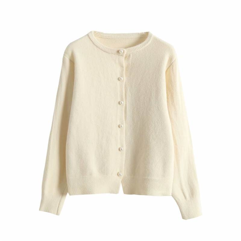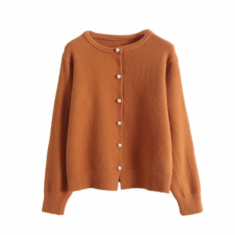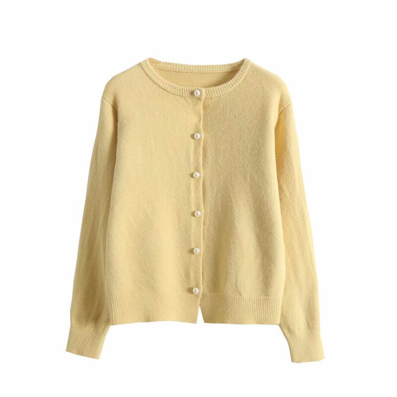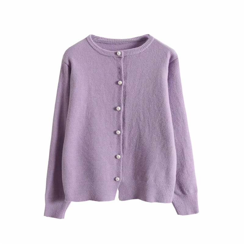【P3倍&クーポン有】ニット カーディガン トップス レディース 個性的 春 秋 普通丈トップス 長袖 萌袖 ラウンドネック 襟なし 羽織り 前開き 伸縮性 ボタン カラバリあり ホワイト 白 ピンク ブラウン オレンジ イエロー 黄色 パープル 紫色 無地 フリーサイズ 厚手