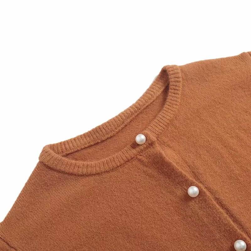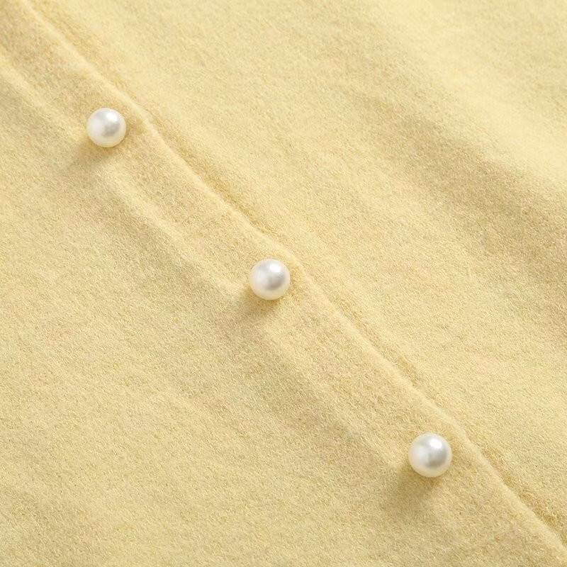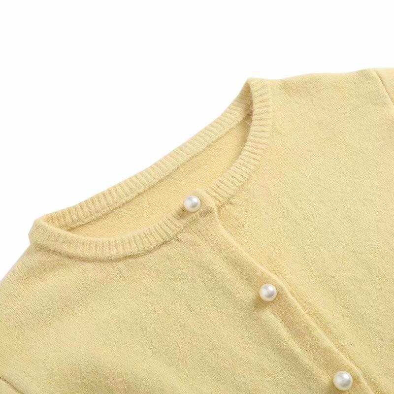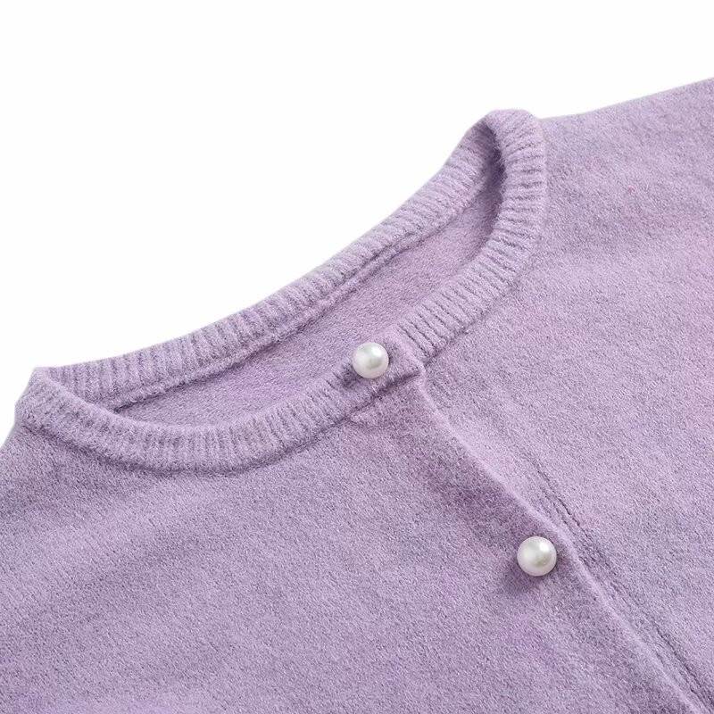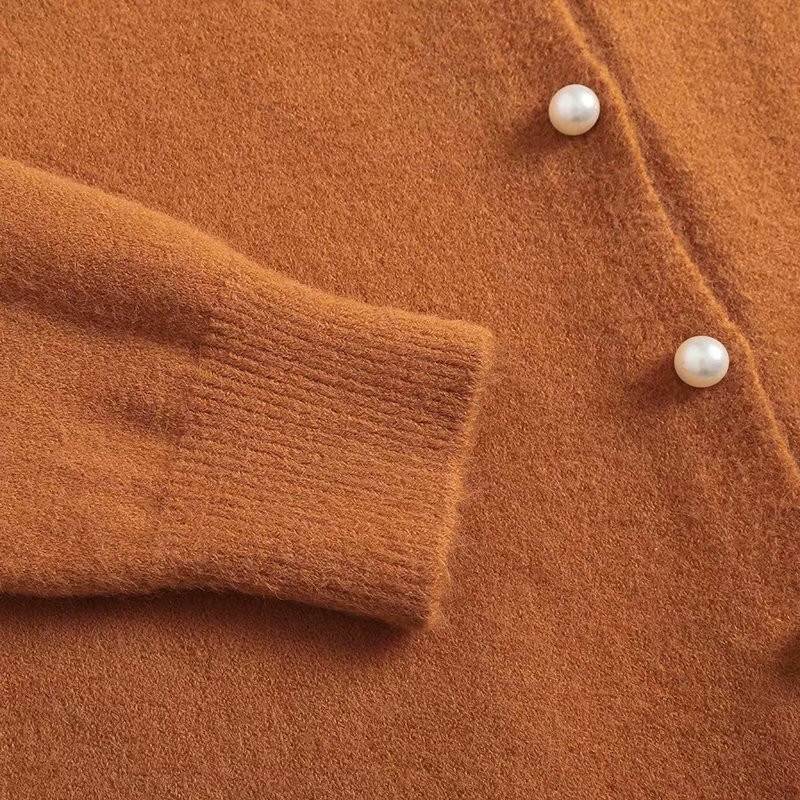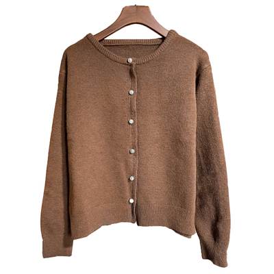 【P3倍&クーポン有】ニット カーディガン トップス レディース 個性的 春 秋 普通丈トップス 長袖 萌袖 ラウンドネック 襟なし 羽織り 前開き 伸縮性 ボタン カラバリあり ホワイト 白 ピンク ブラウン オレンジ イエロー 黄色 パープル 紫色 無地 フリーサイズ 厚手