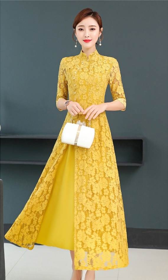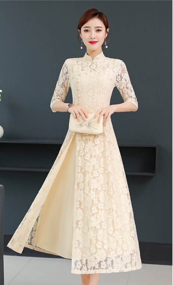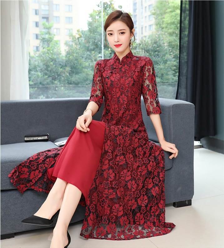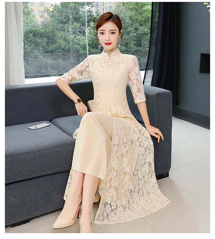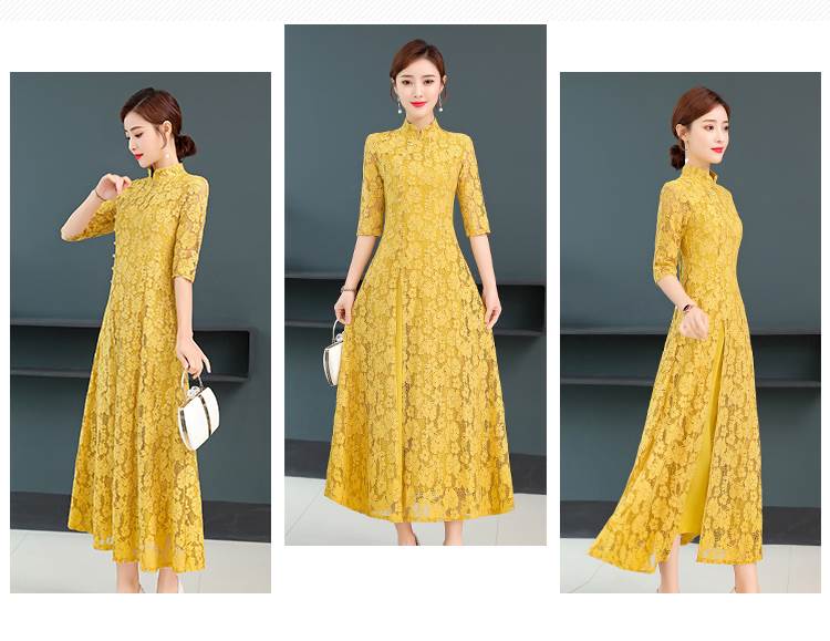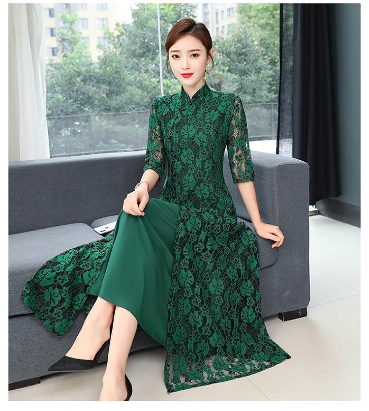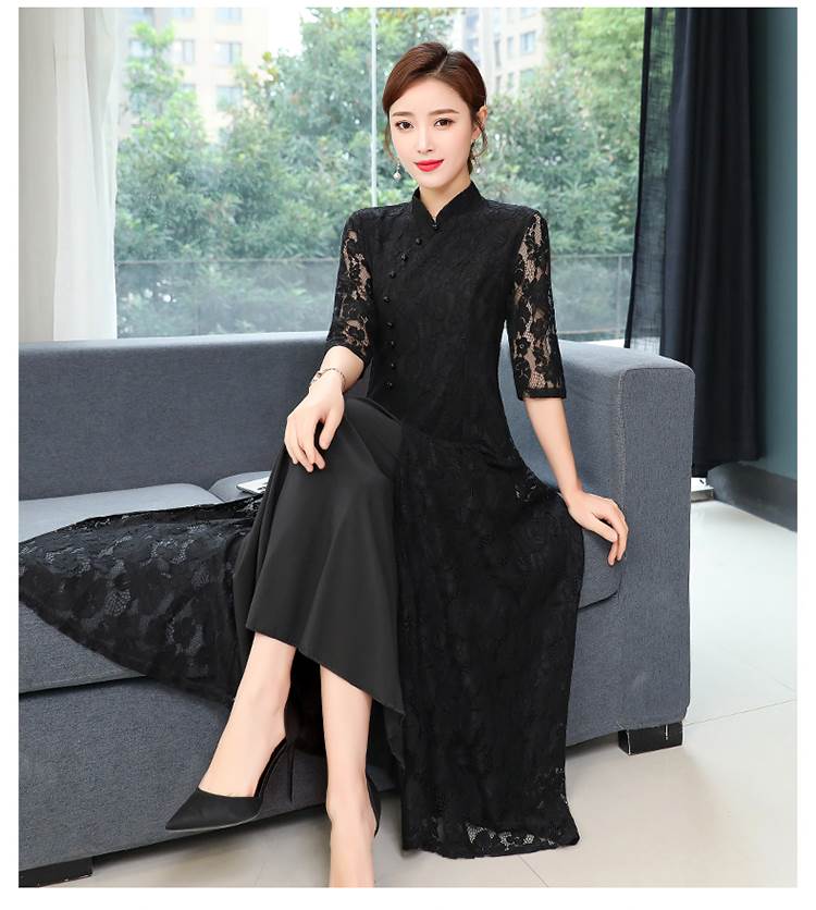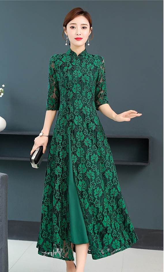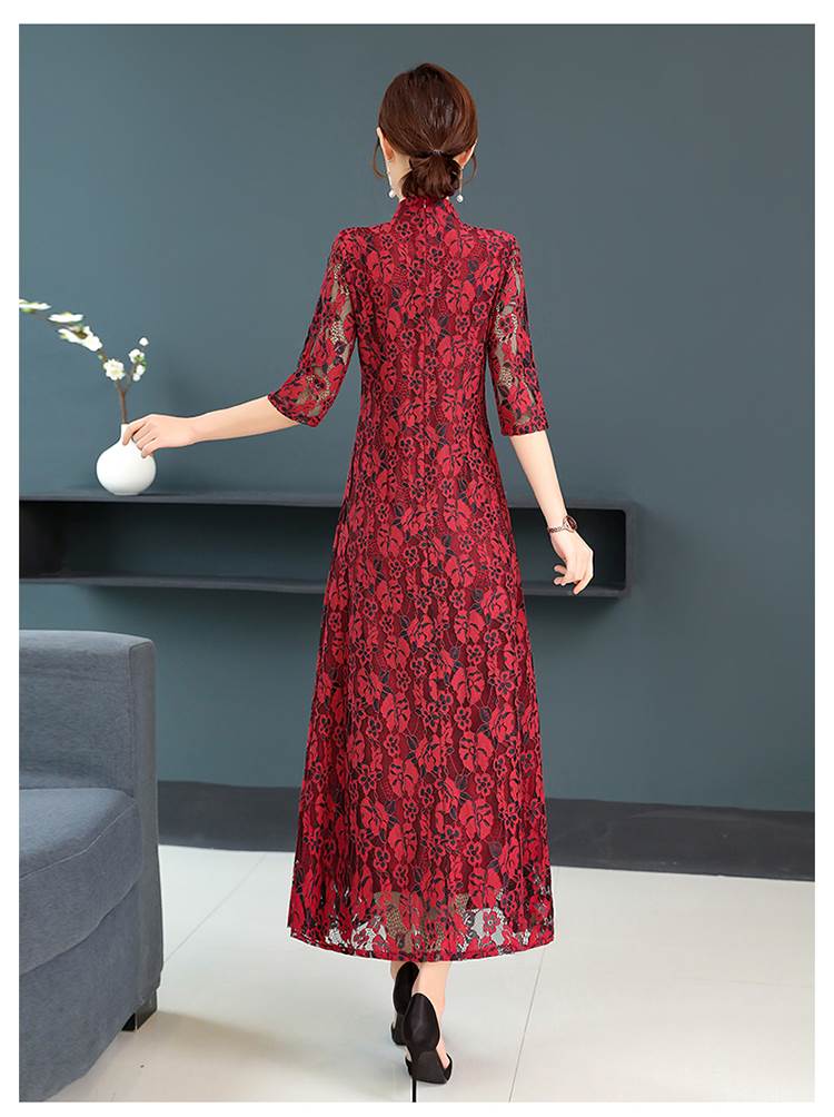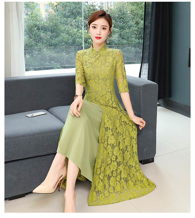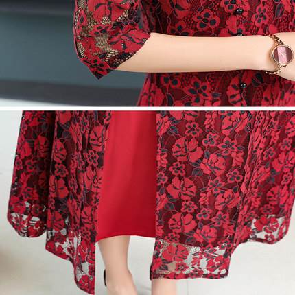 【P2倍&クーポン有】レース Aライン ワンピドレス ワンピース レディース 春 夏 ミディアム丈 ミドル丈 お尻カバー 七分袖 Vネック 襟付き フレア 細身 サイドスリット シフォン ウエスト 透け感 ブラック ベージュ レッド グリーン ピンク ライトブルー イエロー
