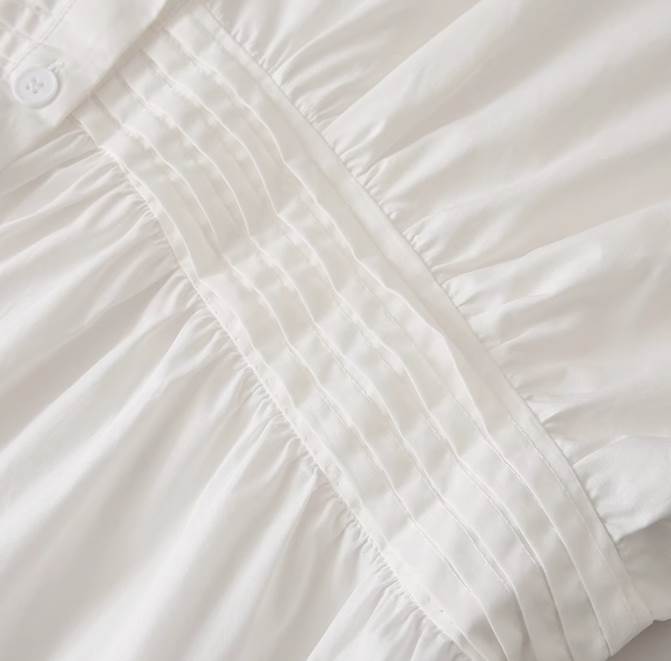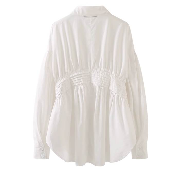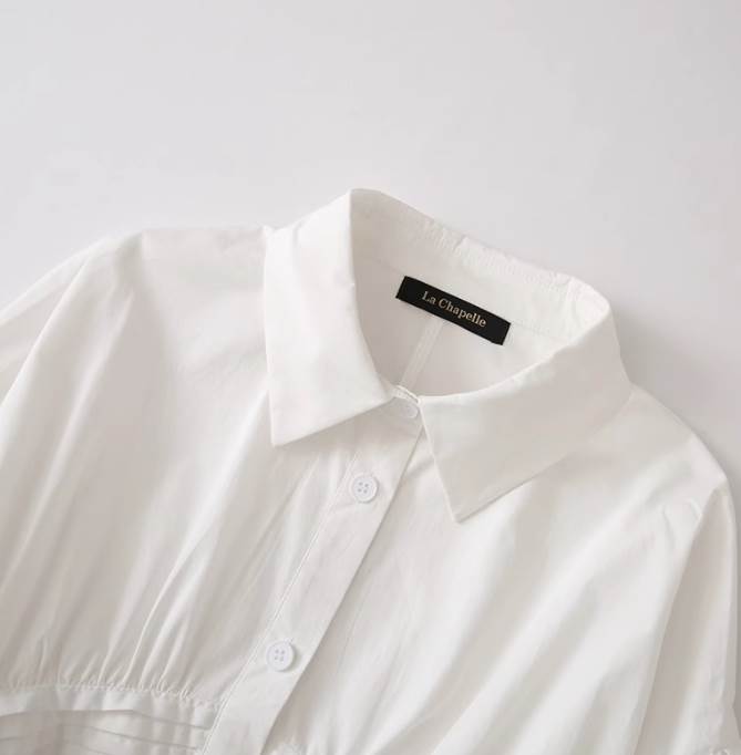 【P3倍&クーポン有】トップス レディース シャツ ブラウス 白シャツ 白トップス 送料無料 個性的 ミディアム 長袖 ポロカラー 切り替えデザイン タック入り プリーツ シフォン タック ホワイト 無地 フリーサイズ 薄手 綿 細見え 着痩せ 効果 コーディネ