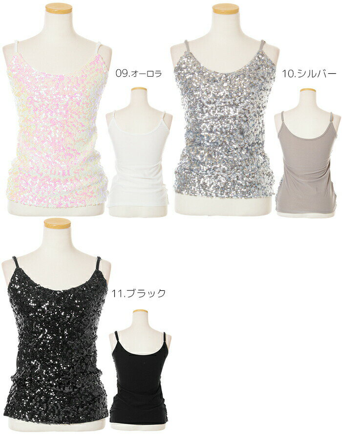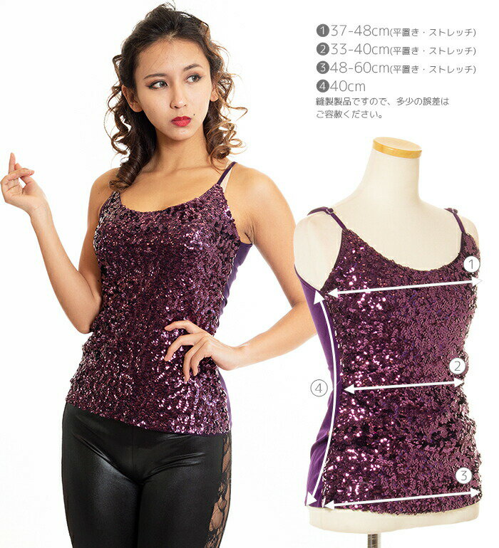 スパンコールトップス キャミソール タンクトップ カットソー(選べる11color)ダンス DANCE ステージ衣装 派手 パンク ヒップホップ オーバーサイズ Tシャツ カットソー[ランダムスパンコール]【t-45】
