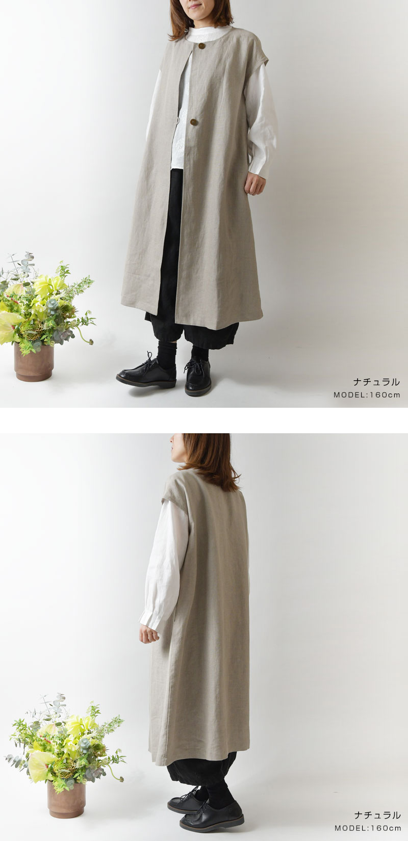 *【10%OFFクーポン対象商品】【nous rendent heureux ヌーランドオロー】リネン キャップ スリーブ ロング ジレ(822173)レディース 夏 春 ゆったり ベスト 体型カバー 大人可愛い ナチュラル 服 シンプル おしゃれ コーディネート 人気 30代 40代 50代