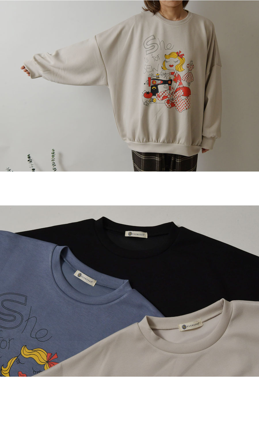 マラソン10%OFFクーポン【SALE 40%OFF】【BARNDOOR バーンドア】ダンボール ニット ミシン プリント ビッグ トレーナー (1191127h)レディース 春 秋 冬 スウェット ゆったり ビッグサイズ ワイド ナチュラル 服 新作 おしゃれ コーデ ナチュランド 人気 30代 40代 5
