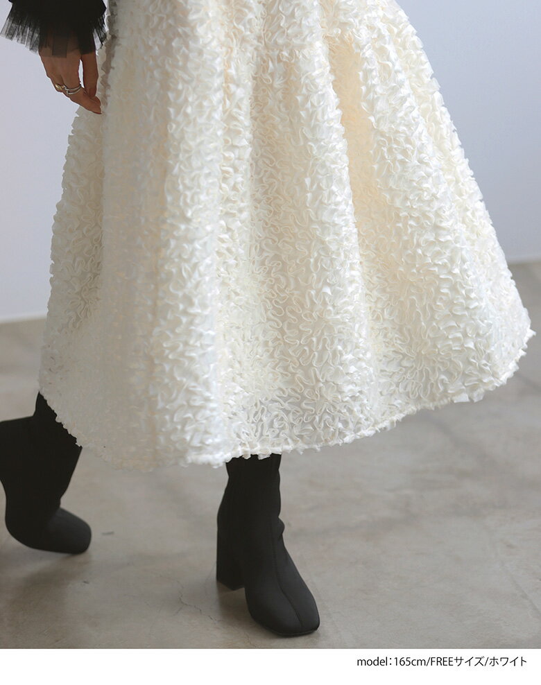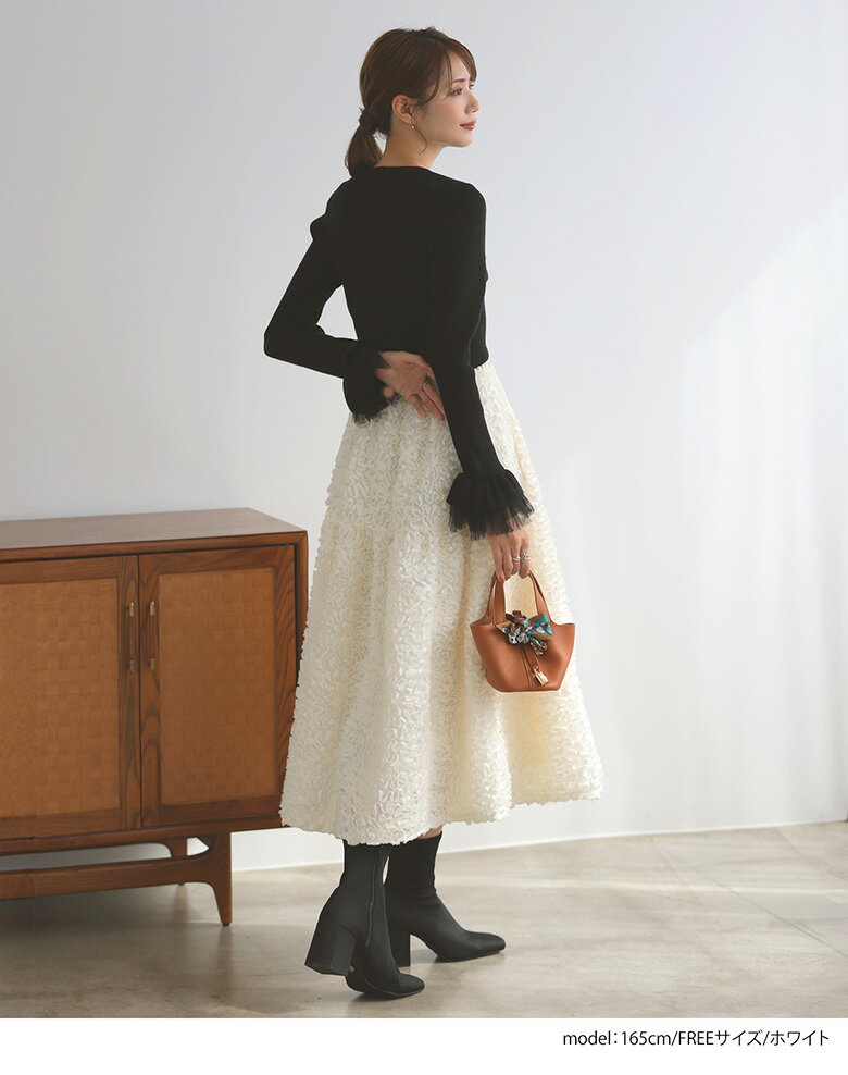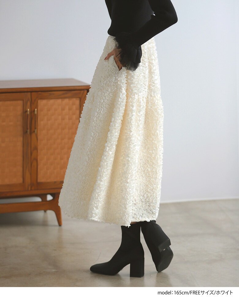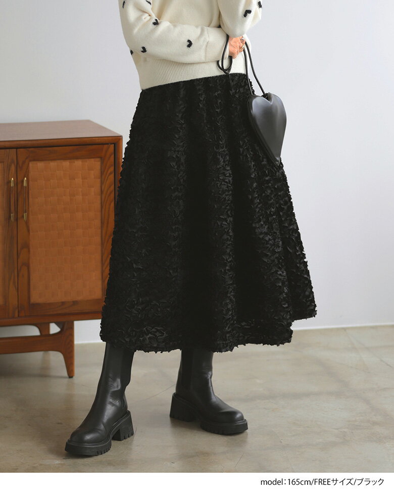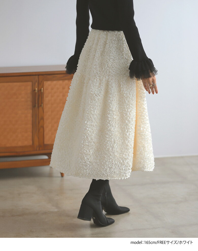 フラワーモチーフスカート フレア ロング丈 スカート ボトムス レディース 秋 冬【mt09】【(ブラック)予約販売:2024/12/9までに発送】【(ホワイト)即納:1~2日以内に発送予定(店舗休業日を除く)】【送料無料】メ込