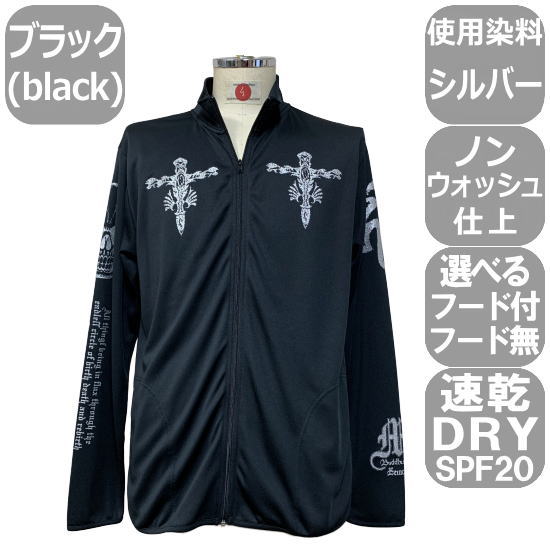 和柄クールドライ冷感 ZIPパーカージャケット「輪廻転生」クロス スカル アメカジ 長袖 ラッシュガード 送料無料 メンズ レディース 大きいサイズ 手染 京都 最大5L