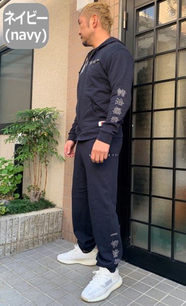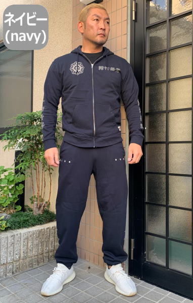 【20%OFFクーポン対象品】和柄上下セット【3L〜5L】ZIPパーカージャケット「BUDDHISM」(ブッディズム)梵字 漢字 四字熟語 仏 仏画 曼荼羅 独鈷 涅槃 パジャマ 上下セットスウェット パイル 京都 メンズ レディース 大きいサイズ 手染 京友禅