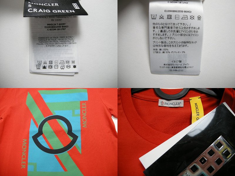 【MONCLER/モンクレール/GENIUS/CRAIG GREEN/クレイググリーン/ロゴTシャツ/TEE/半袖/メンズ/2019SS/春夏/301/オレンジ/ジーニアス/サイズS/M/L/XL/80025-50-809E3】