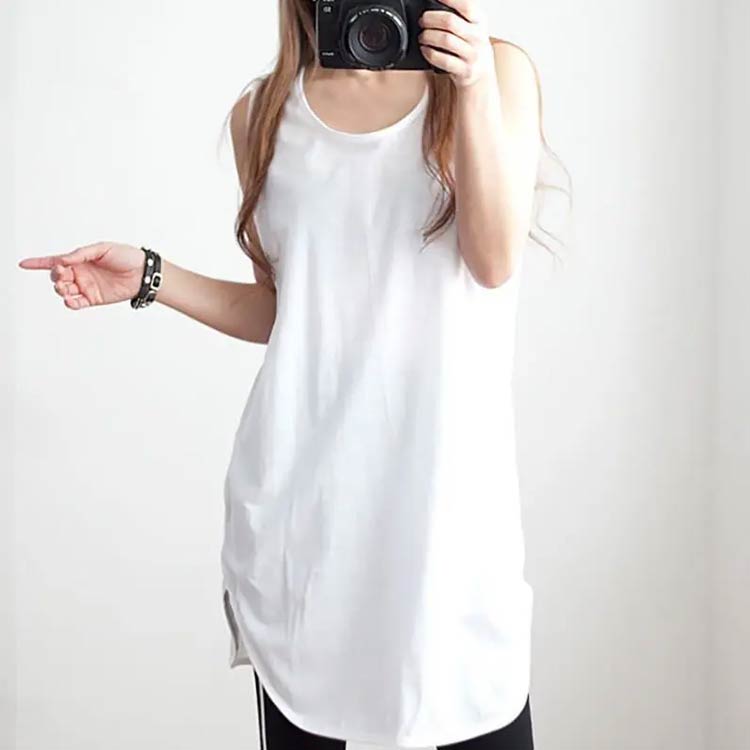 タンクトップ ロング レディース 重ね着 レイヤード インナー Tシャツ 裾ラウンド ノースリーブ トップス 春夏 袖なし 丸裾 カットソー 無地 薄手 おしゃれ カジュアル シンプル サイドスリット ブラック ホワイト M L XL 2XL