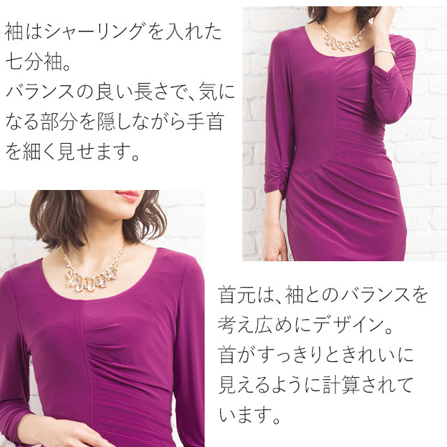 ワンピース:不二子 ベーシック ゴールドチェーン ◆opn050012 きれいめ 30代 40代 50代 着やせ 大人 上品 エレガント 大きいサイズ トールサイズあり タイトワンピース 不二子ワンピース ジャージー 幾何学 フォーマル オフィス 結婚式 二次会 膝丈 七分袖 春 秋冬