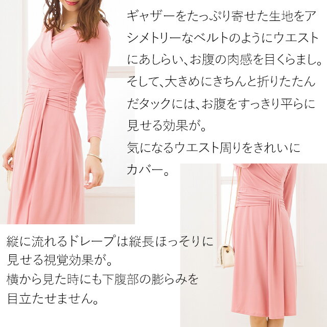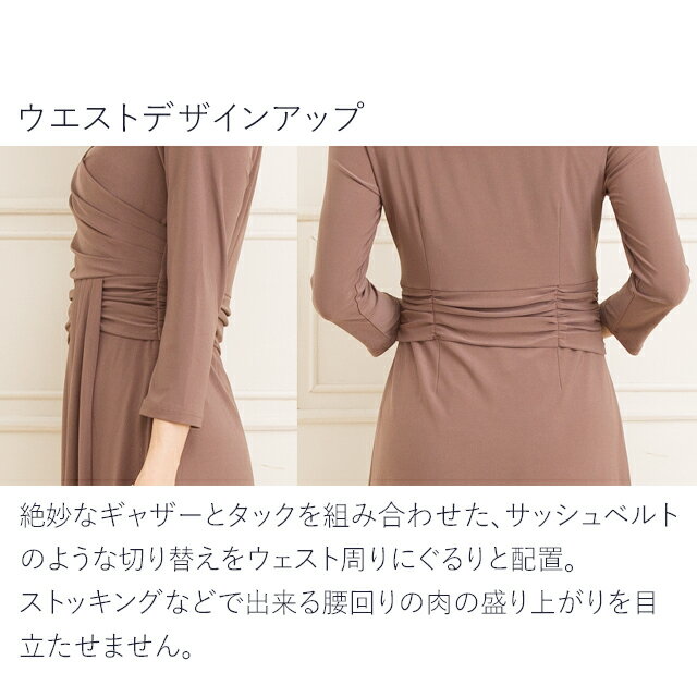 プリンセス ドレープ:エレガントチェック ブラック×ベージュライン ◆opl1-050006 ウエストタックカシュクールワンピ ドレープワンピース エレガント ジャージー 30代 40代 50代 ワンピース 大人 上品 エレガント 膝丈 オフィス 着やせ S/M/L/XL/トールサイズ