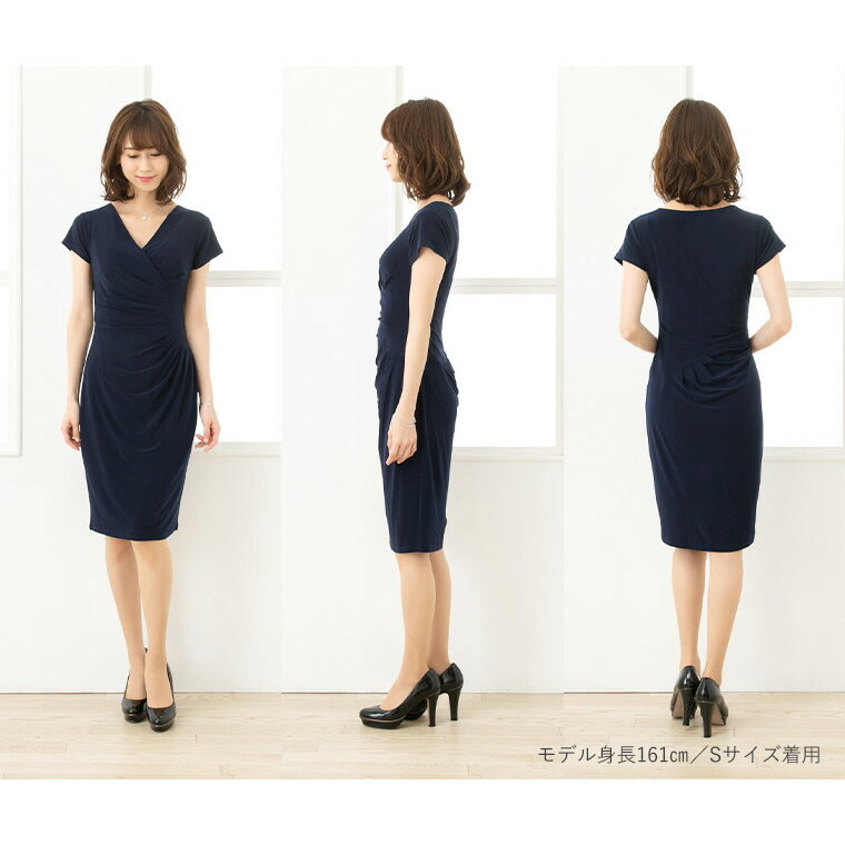 ワンピース:不二子 カシュクール ルーチェ ◆opc7-040002 きれいめ 30代 40代 50代 着やせ 大人 上品 エレガント 大きいサイズ トールサイズあり タイトワンピース カシュクールワンピース ジャージー ボタニカル柄 フォーマル オフィス 二次会 膝丈 半袖 春夏 秋