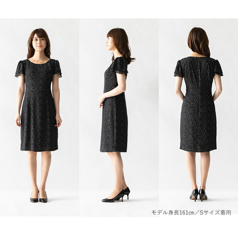 ワンピース:クロエ セミフレア ジェムストーンドット ◆opj011-0004 きれいめ 30代 40代 50代 着やせ 大人 上品 エレガント 大きいサイズ トールサイズありシフトワンピース シフトドレス シフォン ドット柄 オフィス カジュアル 婚活 結婚式 膝丈 半袖 春夏 秋