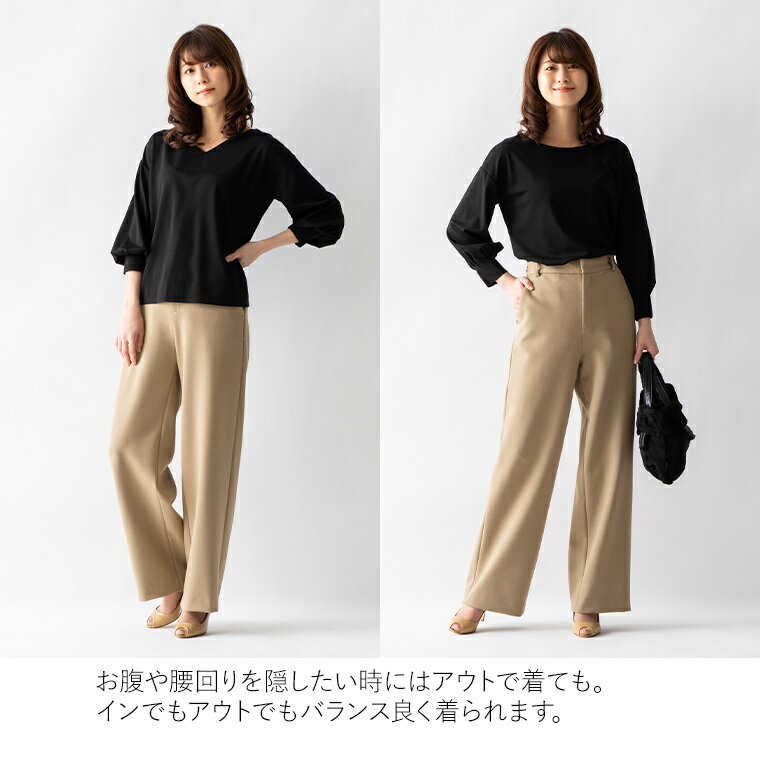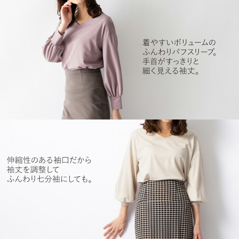 ブラウス:2WAYブラウス パフスリーブ 無地 ◆tp004-0001 きれいめ 30代 40代 50代 着やせ 大人 上品 エレガント ゆったり 大きいサイズあり トップス シンプル スーツ インナー 薄手 ジャージー フォーマル オフィス カジュアル 卒業式 入学式 九分袖 春 秋冬
