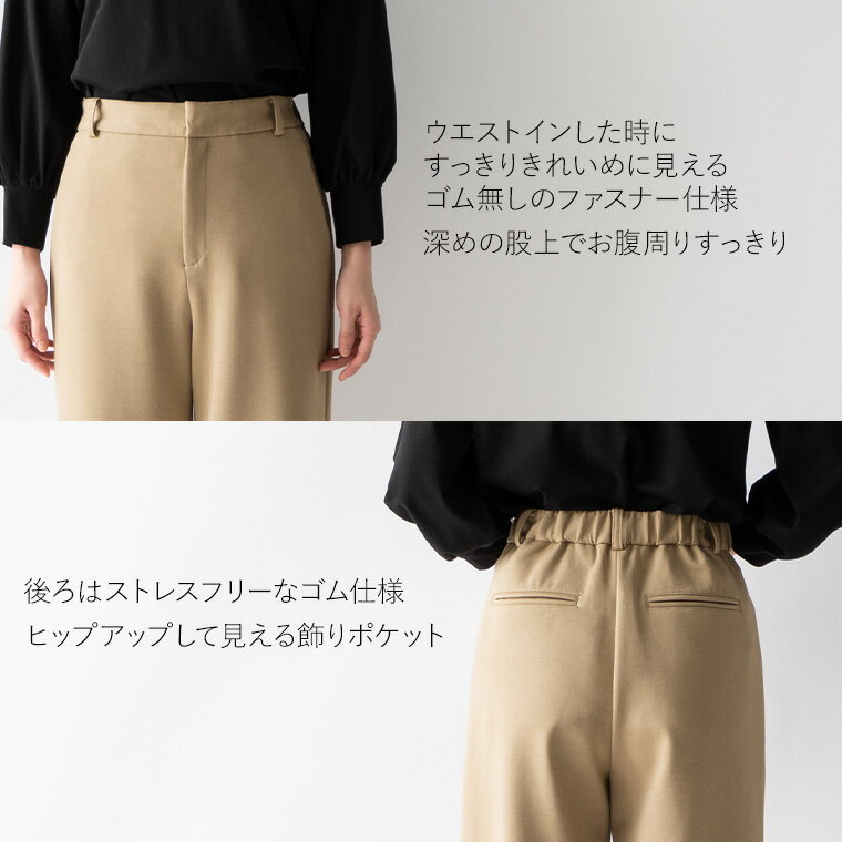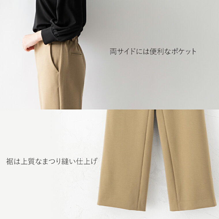 パンツ:セミワイドパンツ ヘリンボーン ◆pt003a-07 レディース きれいめ 30代 40代 50代 着やせ 大人 上品 エレガント 大きいサイズ トールサイズ 暖かい ゆったり ボトムス スラックス ズボン ストレート ウエストゴム フォーマル オフィス カジュアル ロング丈 秋 冬