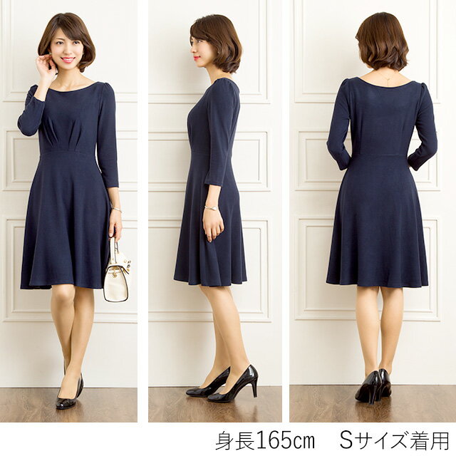 ワンピース:ケリー フレア ルミエール ◆opr2a-050011 きれいめ 30代 40代 50代 着やせ 大人 上品 エレガント 大きいサイズ トールサイズあり フレアワンピース ジャージー ドット柄 フォーマル オフィス 七五三 二次会 婚活 結婚式 膝丈 七分袖 春 秋冬