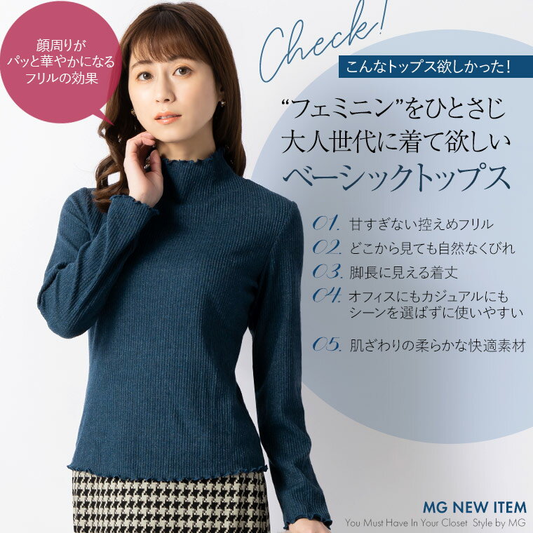 リブカットソー ハイネック ◆tp012-0001 きれいめ 30代 40代 50代 着やせ 大人 上品 エレガント 大きいサイズあり トップス プルオーバー シンプル スーツ インナー スタンドネック 薄手 リブ編み ニット メロウ メロー 無地 オフィス カジュアル ギフト 長袖 秋冬