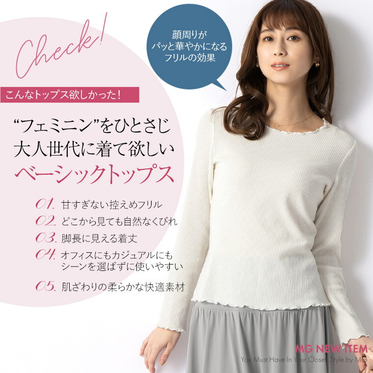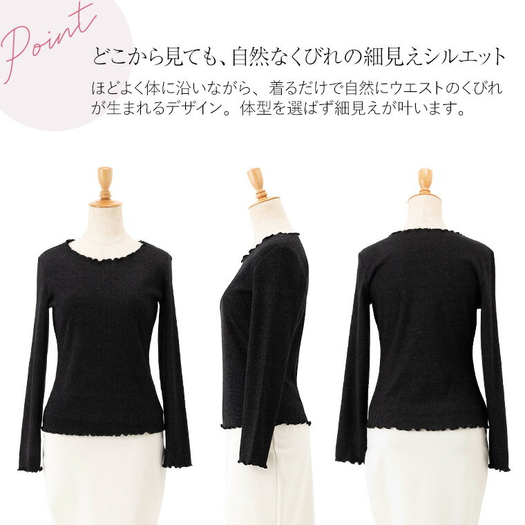 リブカットソー ラウンドネック ◆tp015-0001 きれいめ 30代 40代 50代 着やせ 大人 上品 エレガント 大きいサイズあり トップス プルオーバー シンプル スーツ インナー クルーネック 薄手 リブ編み ニット メロウ メロー 無地 オフィス カジュアル 長袖 春 秋冬