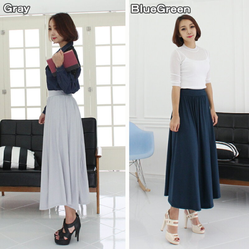 無地フレアロングスカート ロング丈 シンプルマキシスカート ワイドフレア【全13色】