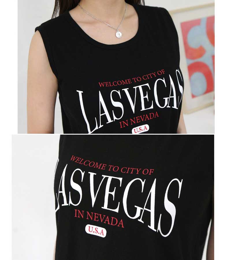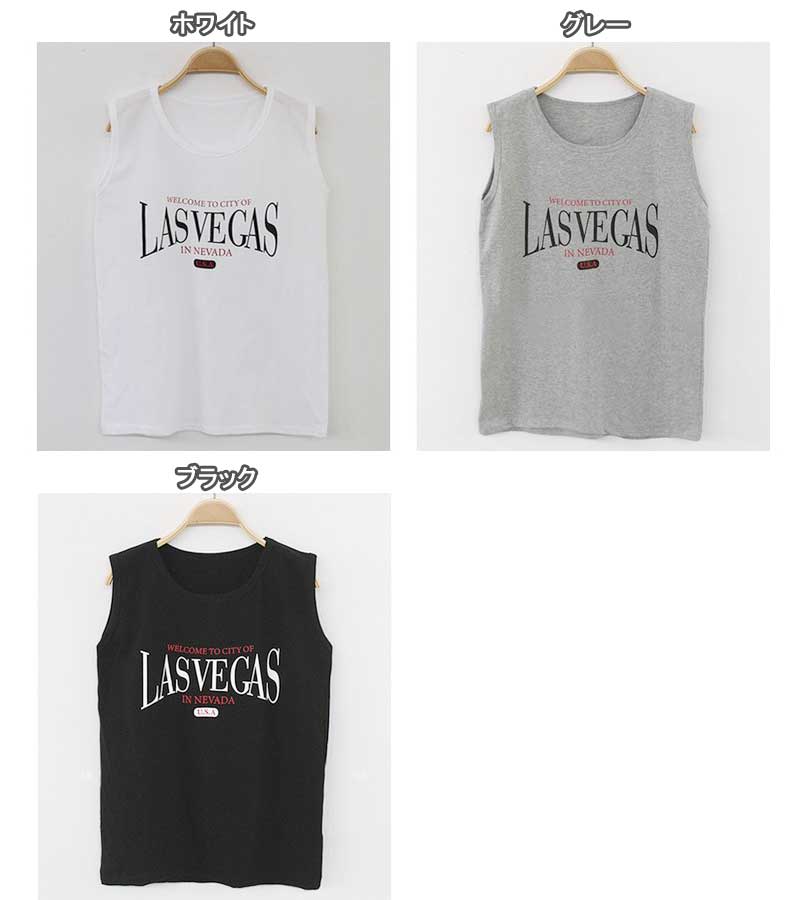 【送料無料】ノースリーブ 英字[LASVEGAS…]ロゴ タンクトップ Tシャツ カットソー トップス
