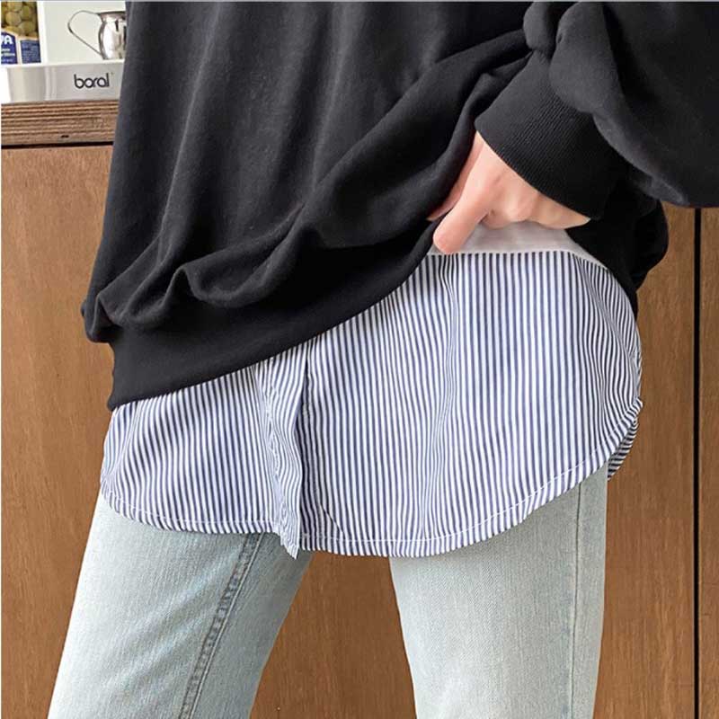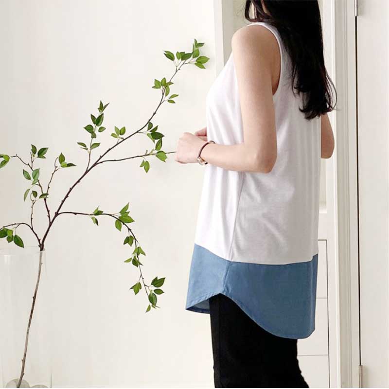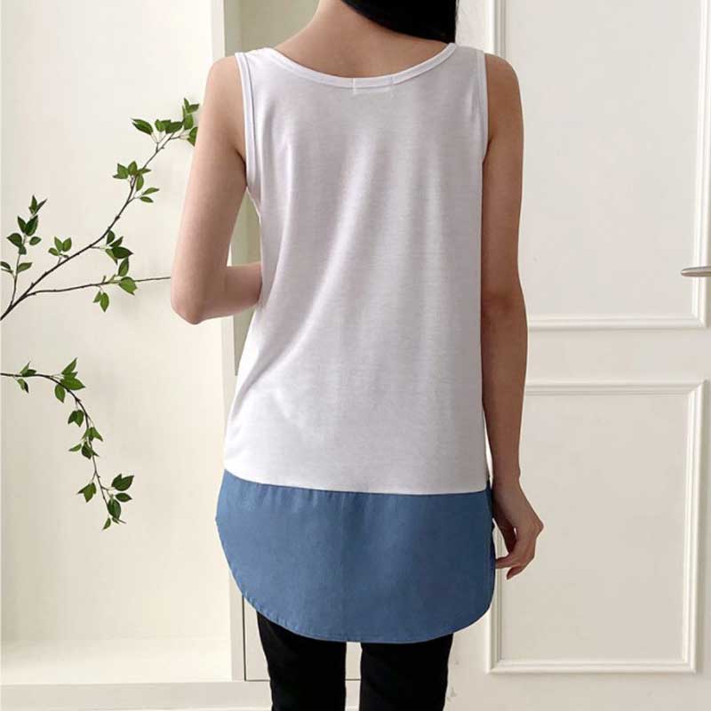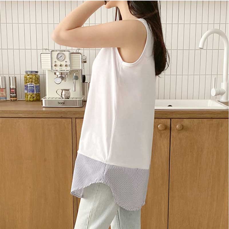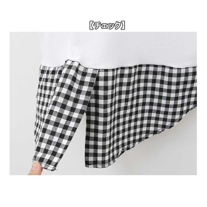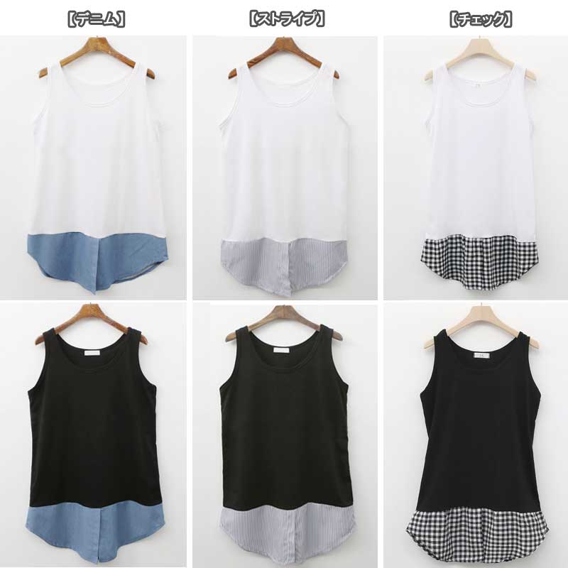 【送料無料】タンクトップ 重ね着 着回し ノースリーブ ストライプ デニム チェック インナー 裾シャツ ロング丈 トップス レディース