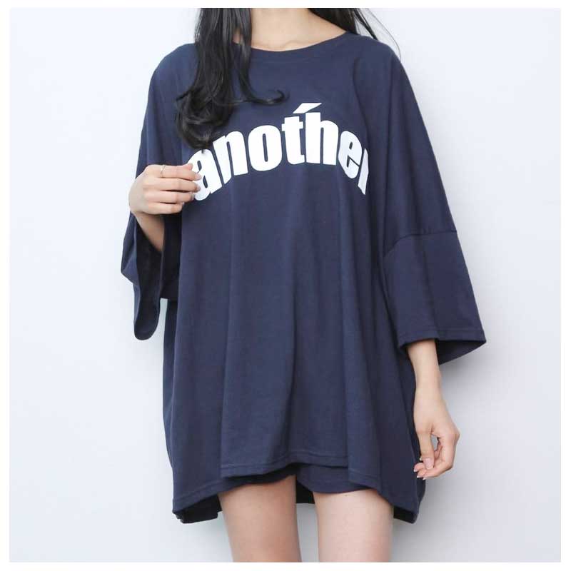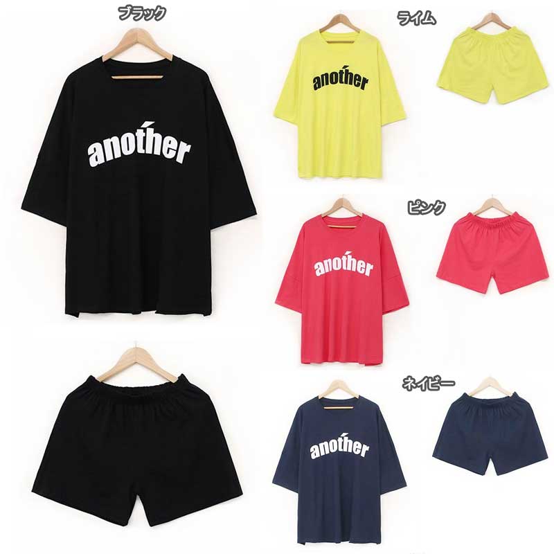 セットアップ 英字[another]ロゴプリント スウェット上下セットアップ BIGシルエット半袖ロング丈カットソー&ショートパンツ 2点SET SETUP ゆったり大きいサイズ プルオーバー トレーナー
