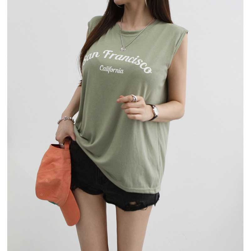 【送料無料】ノースリーブ タンクトップ 英字[San Francisco…]プリント Tシャツ Tシャツ カットソー トップス