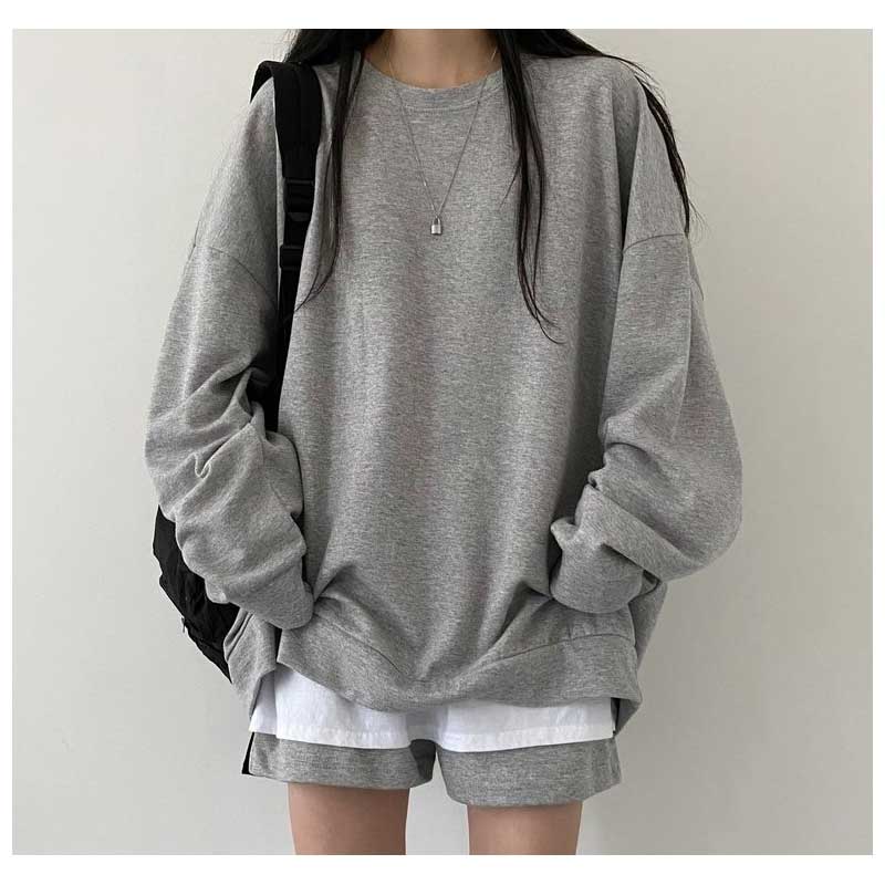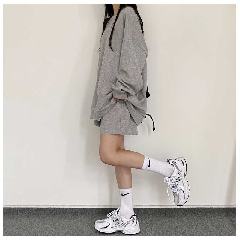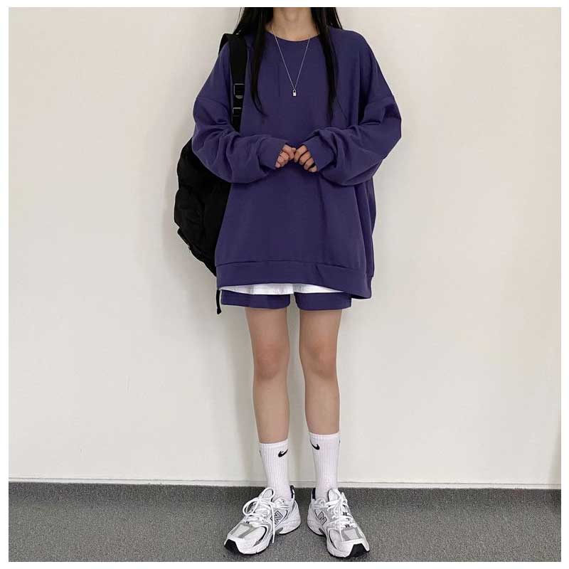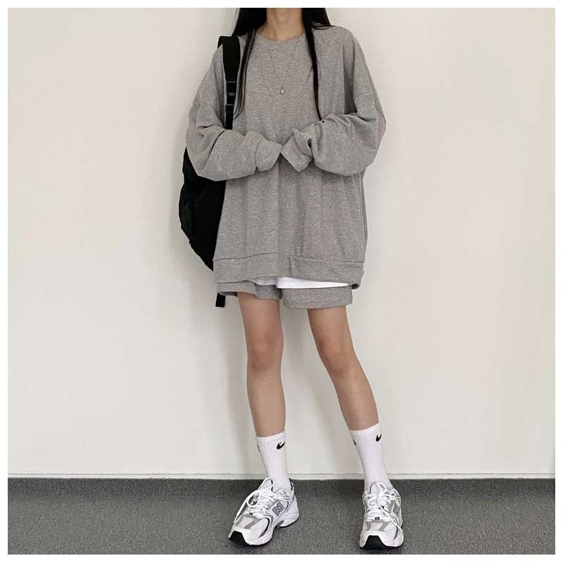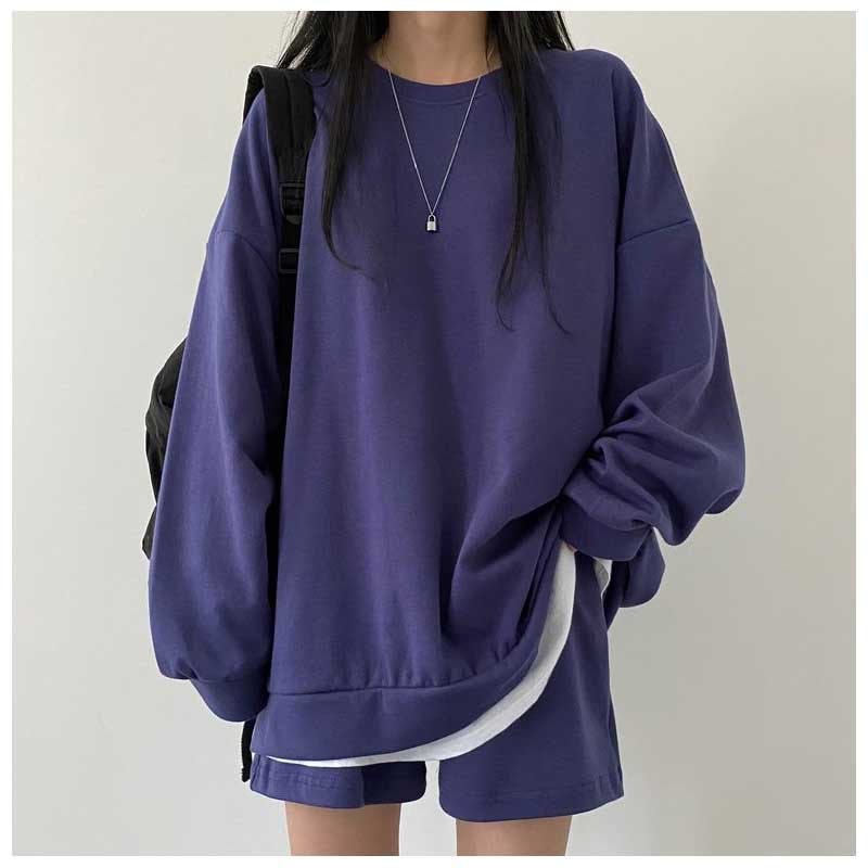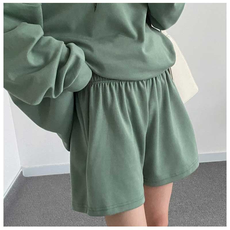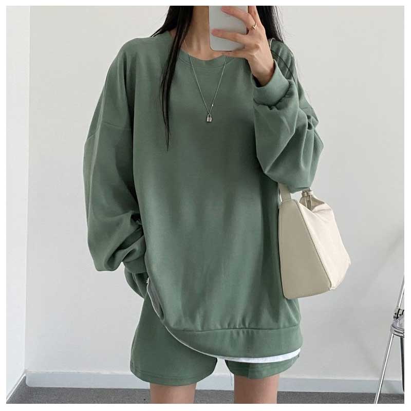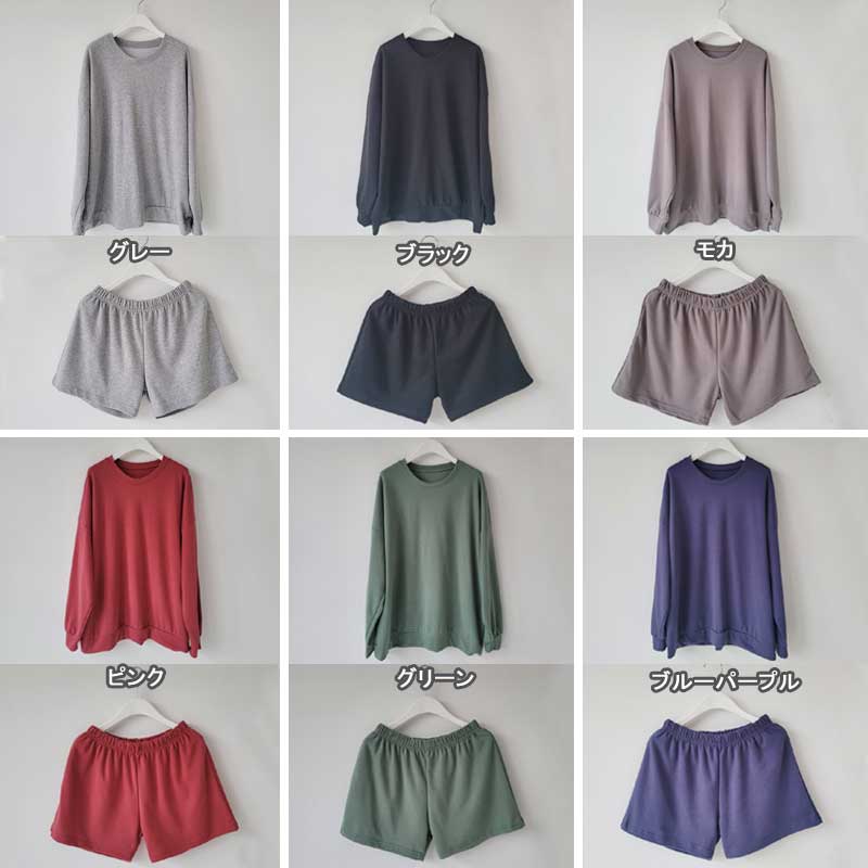 セットアップ 無地 スウェット上下セットアップ 長袖 ロング丈 カットソー&ショートパンツ 2点SET SETUP トレーナー プルオーバー