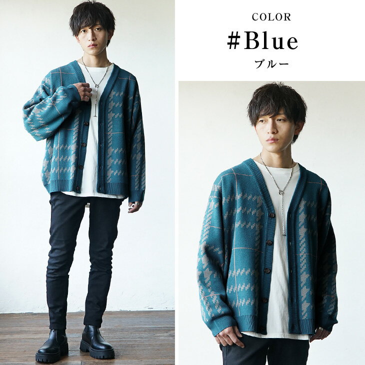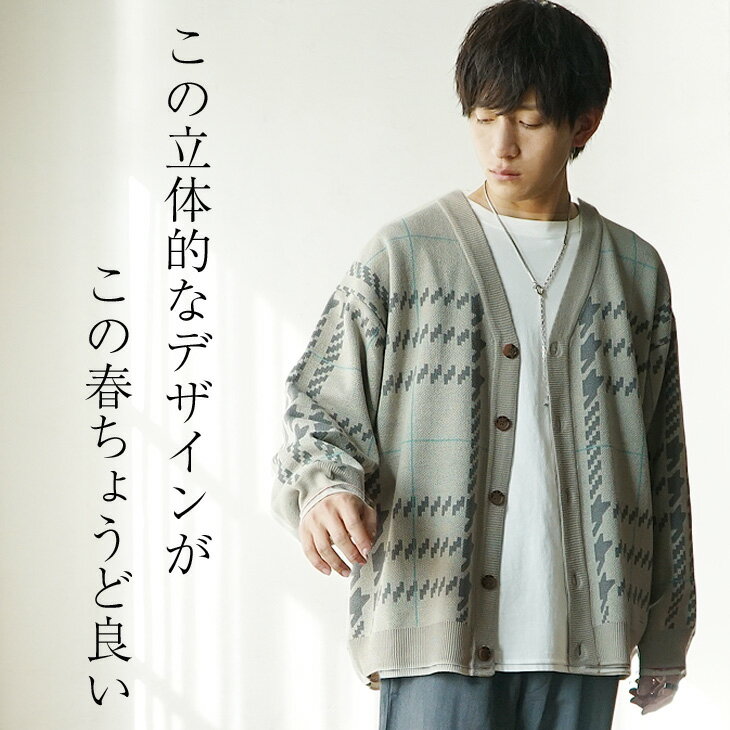 オーバーサイズ カーディガン メンズ カーディガン 春 カーディガン 柄 カーディガン チェック ニット カーディガン vネック 厚手 カーディガン 厚手 メンズ ニットカーディガン 厚手 メンズ ゆったり カーディガン ブルー ベージュ グレー 韓国ファッション 春服 春 春夏