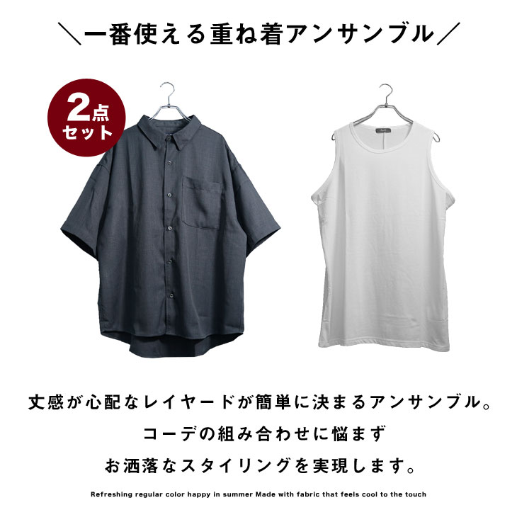 冷感 シャツ メンズ 半袖 オーバーサイズ シャツ ビッグシルエット シャツ メンズ ゆったり タンクトップ メンズ アンサンブル シャツ 半袖 夏 シャツ メンズ カジュアル シャツ メンズ 半袖 韓国 ファッション 夏服 夏 ブラック メンズファッション minority マイノリティ