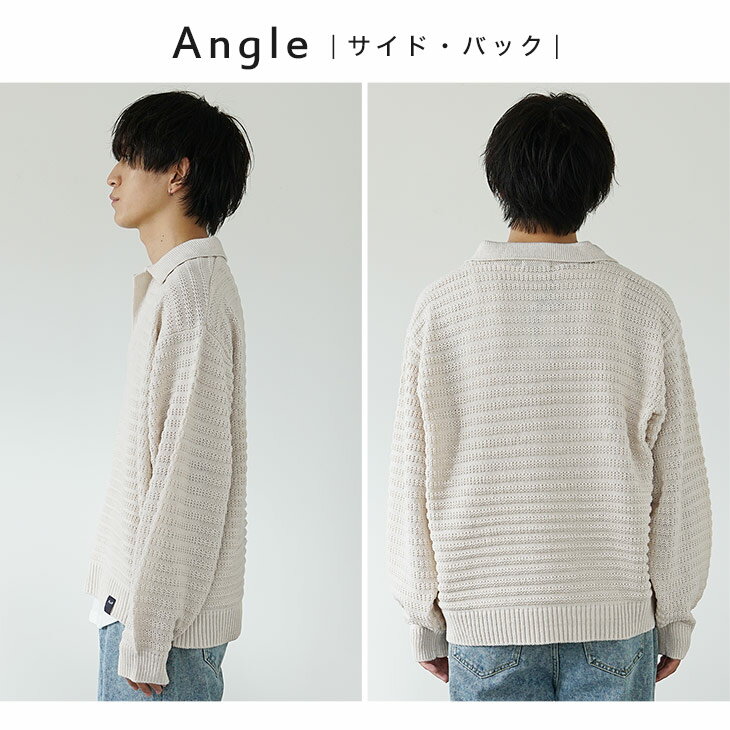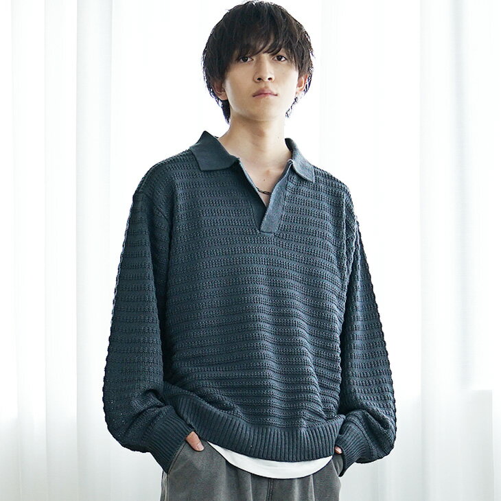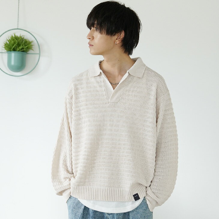 セーター メンズ スキッパー ニット メンズ ポロシャツ 長袖 プルオーバー オーバーサイズ キーネック ビッグシルエット ニットセーター ビッグサイズ 無地 黒 ブラック 白 ホワイト ブルー ベージュ ゆったり 秋 冬 秋服 冬服 メンズファッション マイノリティ minority