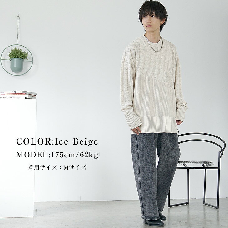 セーター メンズ ロング丈 ニット メンズ ケーブルニット アシンメトリー プルオーバー オーバーサイズ ロング ビッグシルエット ニットセーター 長袖 無地 黒 ブラック 白 ホワイト ブラウン ベージュ ゆったり 秋 冬 秋服 冬服 メンズファッション マイノリティ minority