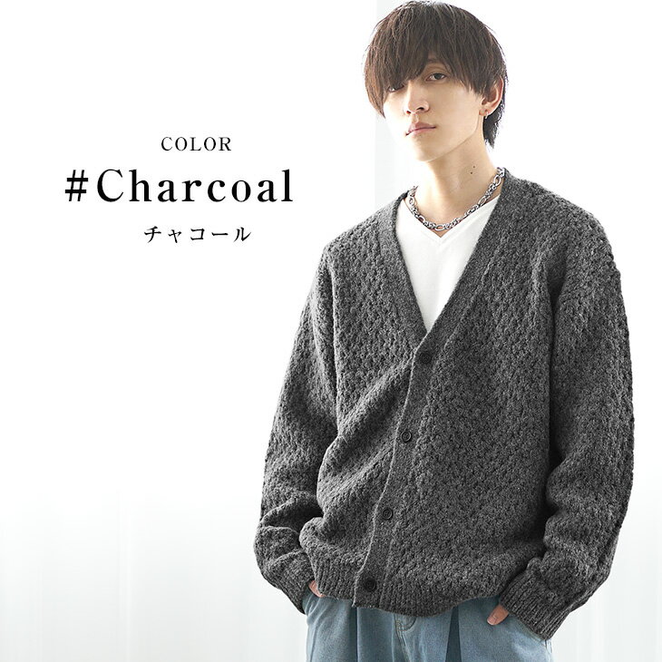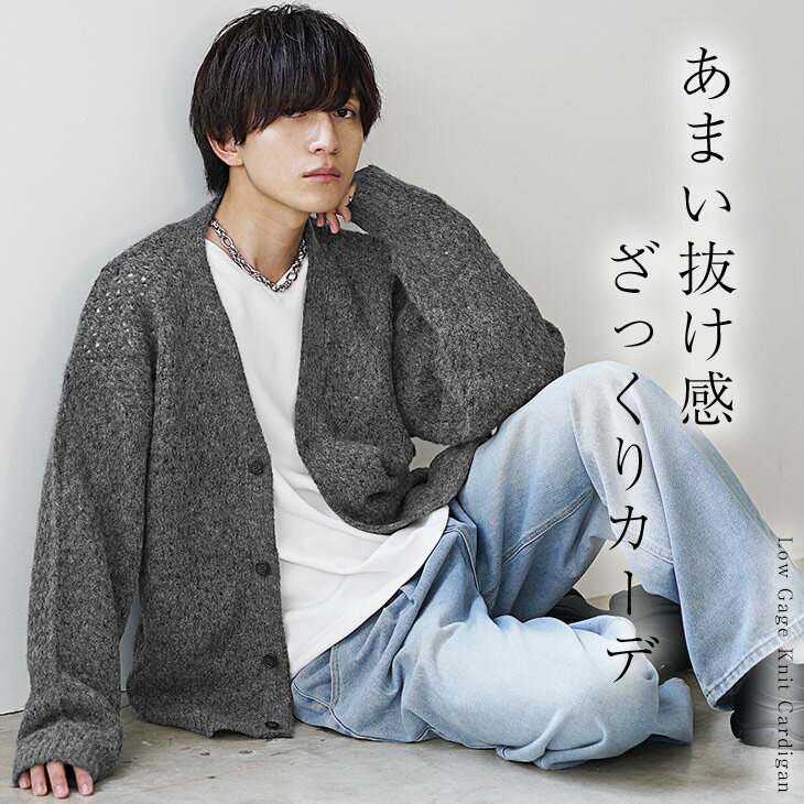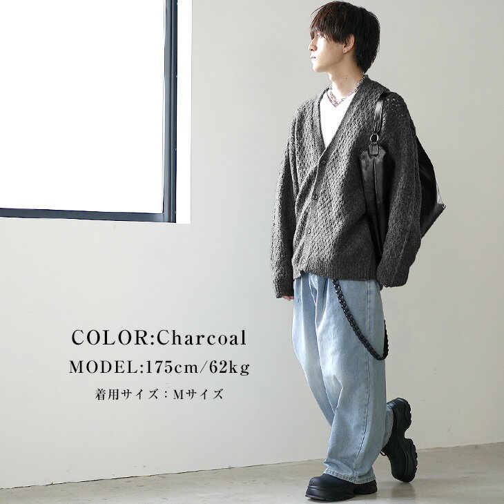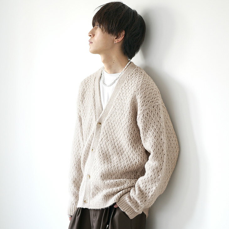 透かし編み カーディガン メンズ 春 ゆったり オーバーサイズ カーディガン ニット ビッグシルエット ニット セーター ゆる カーデ メッシュ シアー 無地 グレー チャコール ベージュ グレージュ 春 春服 春物 韓国ファッション メンズファッション マイノリティ minority