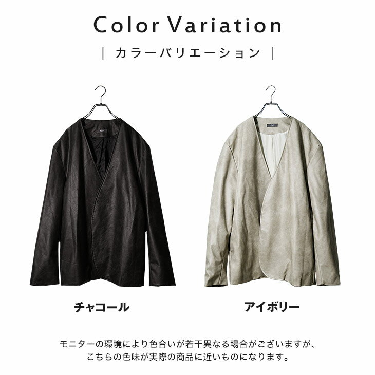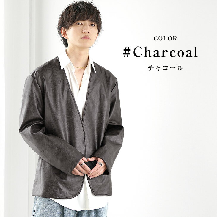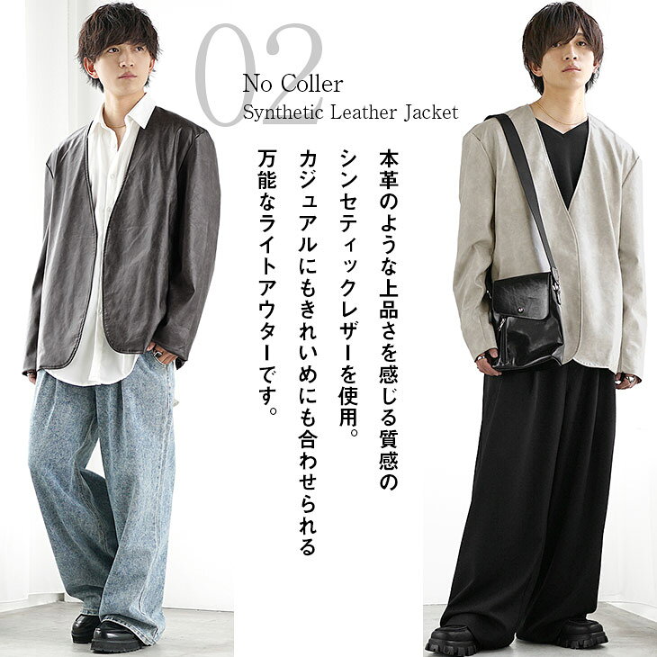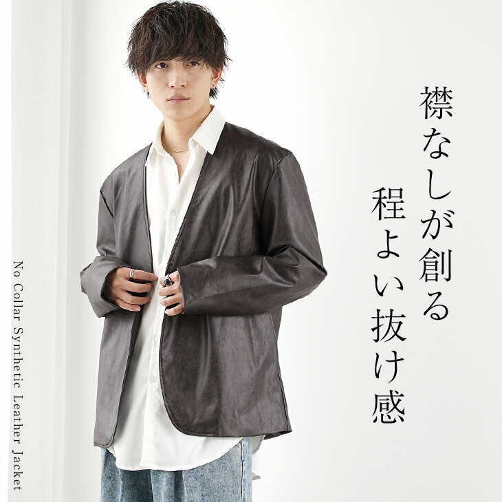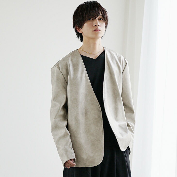レザー ノーカラージャケット メンズ レザージャケット メンズ 春 ジャケット メンズ オーバーサイズ レザーブルゾン PUレザー スプリングジャケット メンズ ライトアウター 春 アウター 韓国 ファッション 春服 春 メンズファッション minority マイノリティ