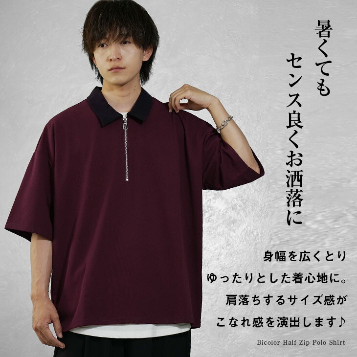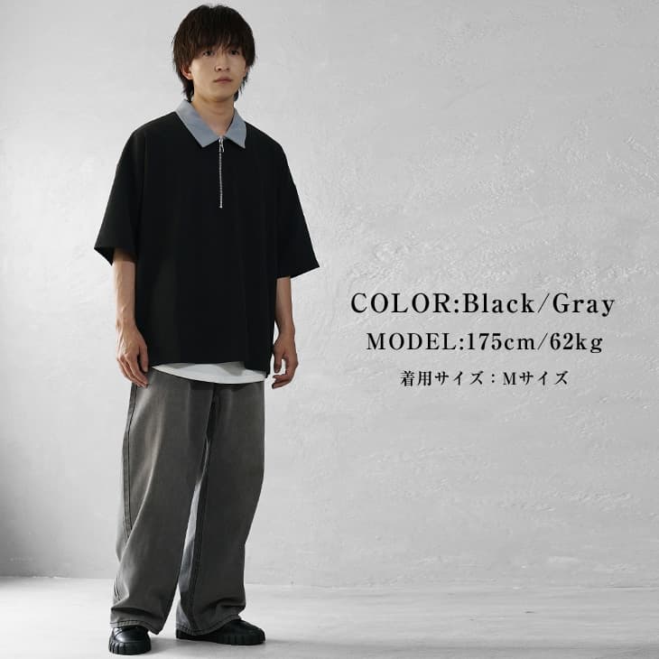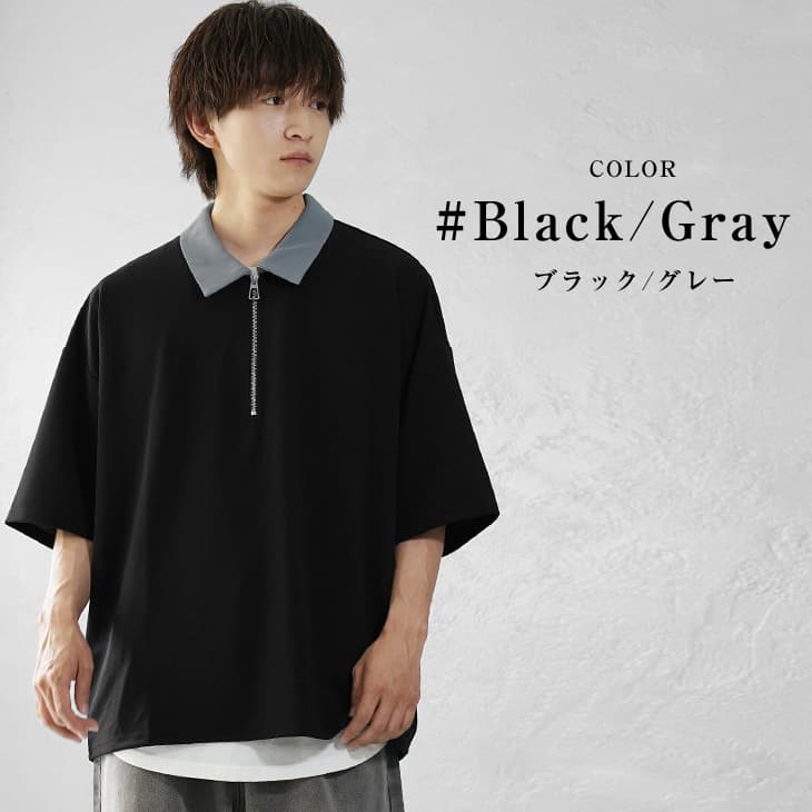 ハーフジップ ポロシャツ メンズ ハーフジップ 半袖 メンズ ジップ ポロシャツ 半袖 メンズ 襟付き 切り替え ポロシャツ オーバーサイズ 大きいサイズ ゆったり 無地 レディース ユニセックス 韓国 ファッション 夏服 夏 モード系 ゴルフウェア メンズ minority マイノリティ