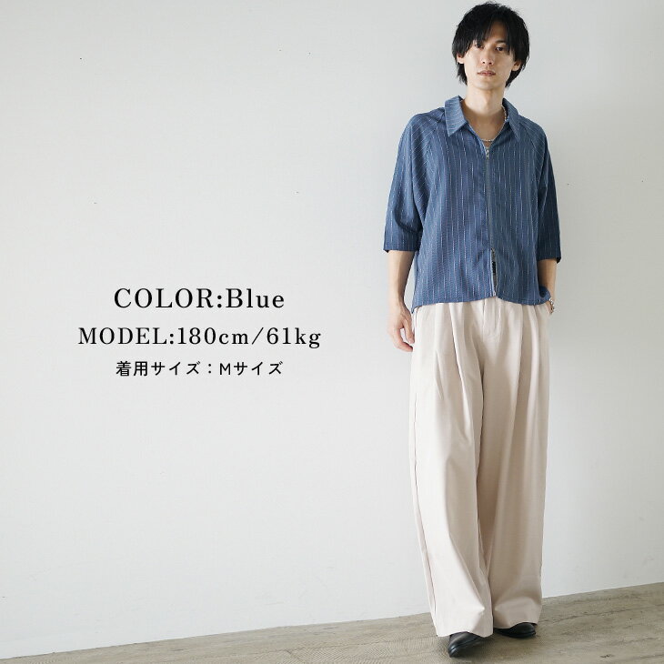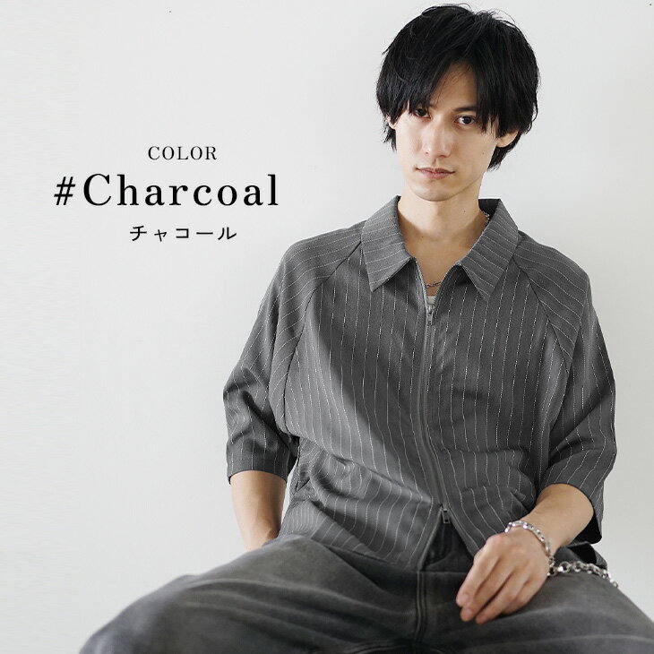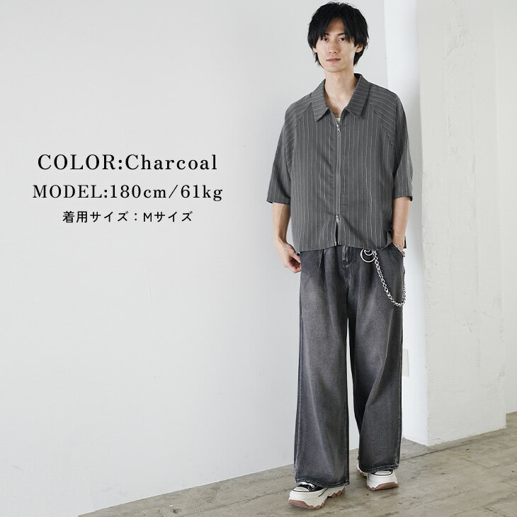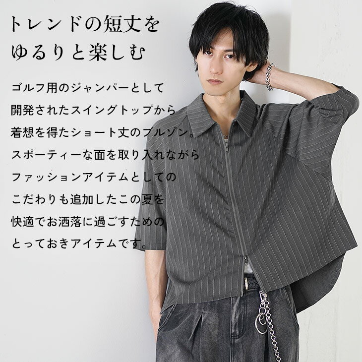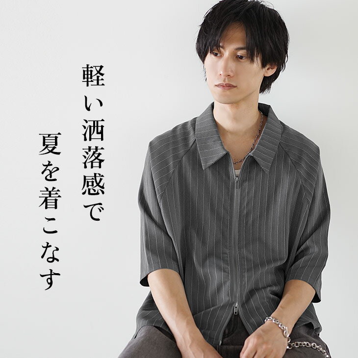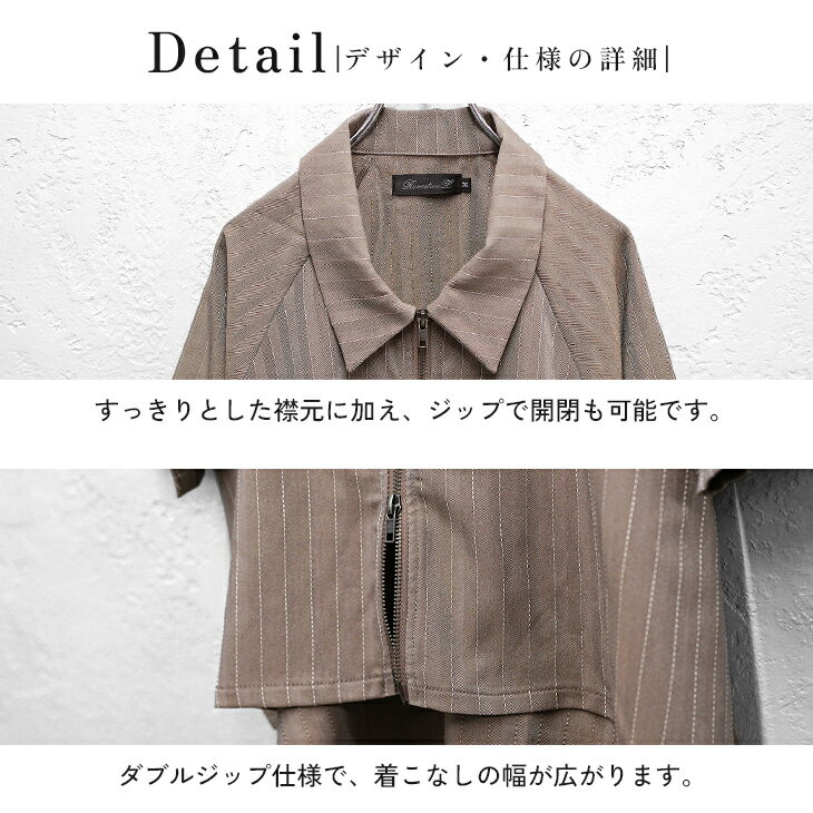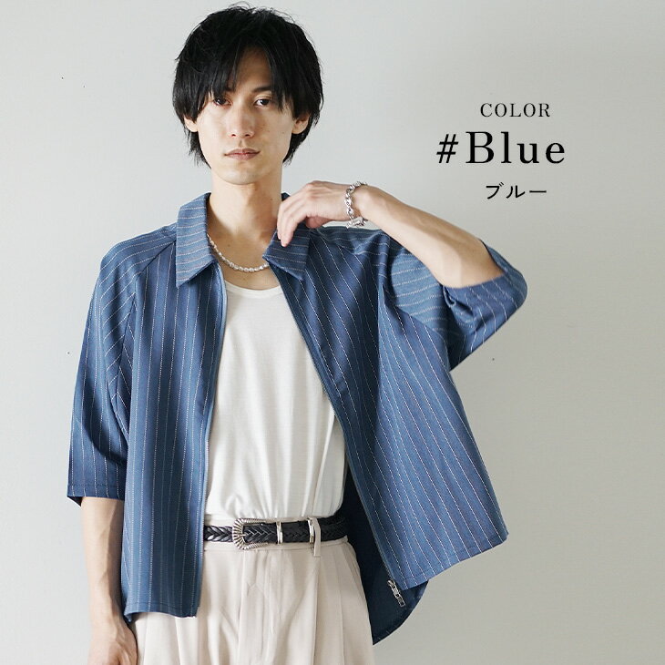 シャツ メンズ 半袖 ビッグシルエット シャツ 半袖シャツ メンズ オーバーサイズ シャツ ビッグ シャツ ビック シャツ スイングトップ ダブルジップ Wジップ ストライプ 羽織り 韓国 ファッション 夏 夏服 春服 メンズファッション モード系 minority マイノリティ
