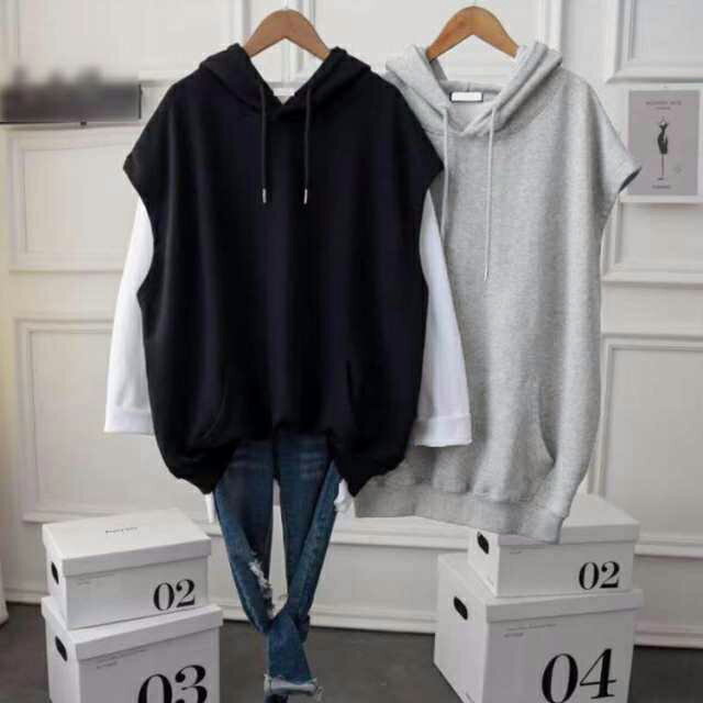 トップス フード付き 無地 スポーツウェア ノースリーブ パーカー ゆったり ベスト プルオーバー レディース カジュアル 軽い 春夏 トレーナー 体型カバー 大きめ 可愛い 通勤 レディース
