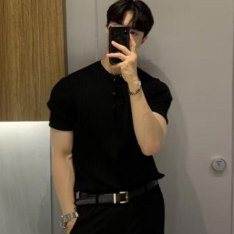 薄手 メンズ ニット 夏物 クルーネック リブニット ニットトップス ニットソー サマーニット スリム 丸首 お洒落 カジュアル 涼しい 春夏 ビジネス 韓国風 紳士服