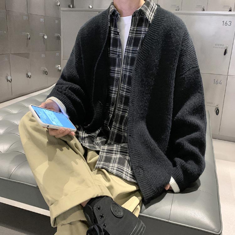 ニットカーディガン メンズ Vネック トップス 学生服 男子 制服 ニットジャケット ニット ライトアウター 羽織り あったか ゆったり オーバーサイズ 前開き セーター 男性用 長袖 トップス シンプル 無地 秋冬 韓国ファッション ブラック 黒 ネイビー 紺 送料無料