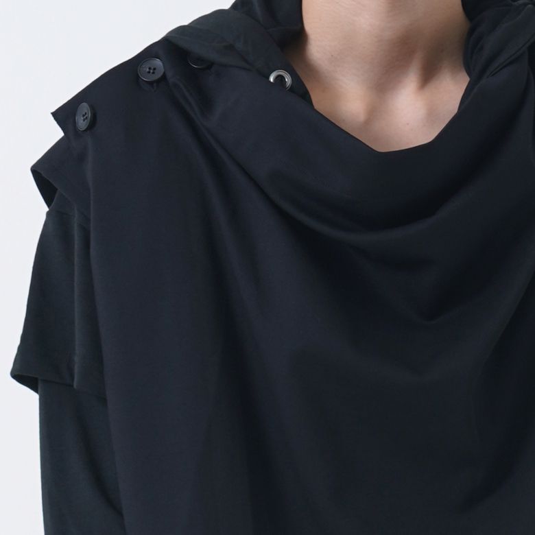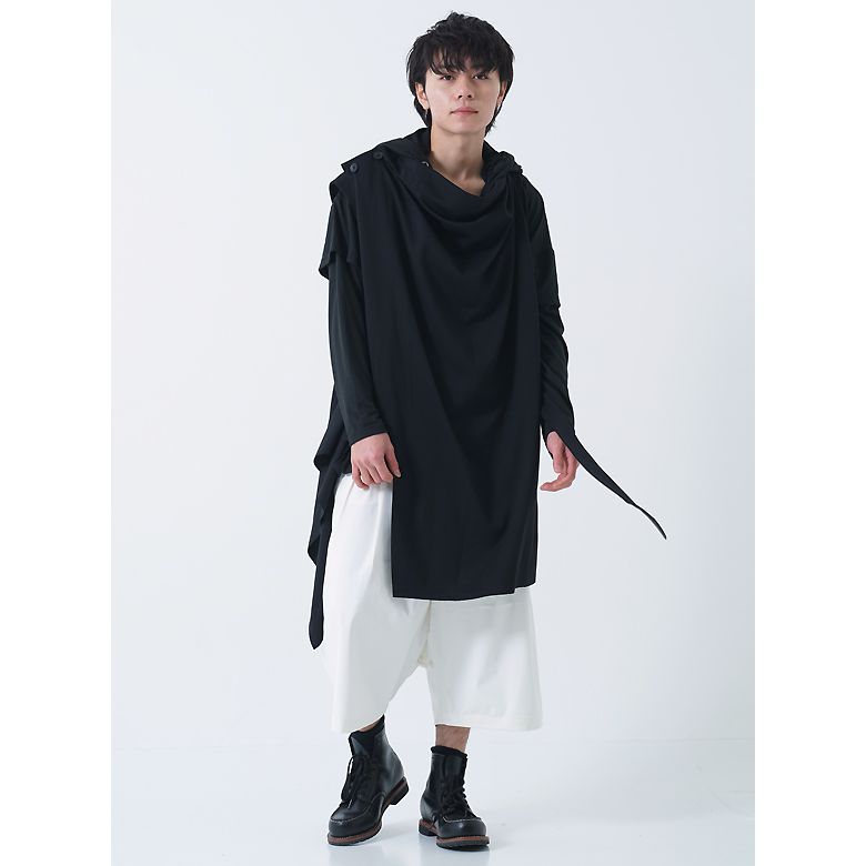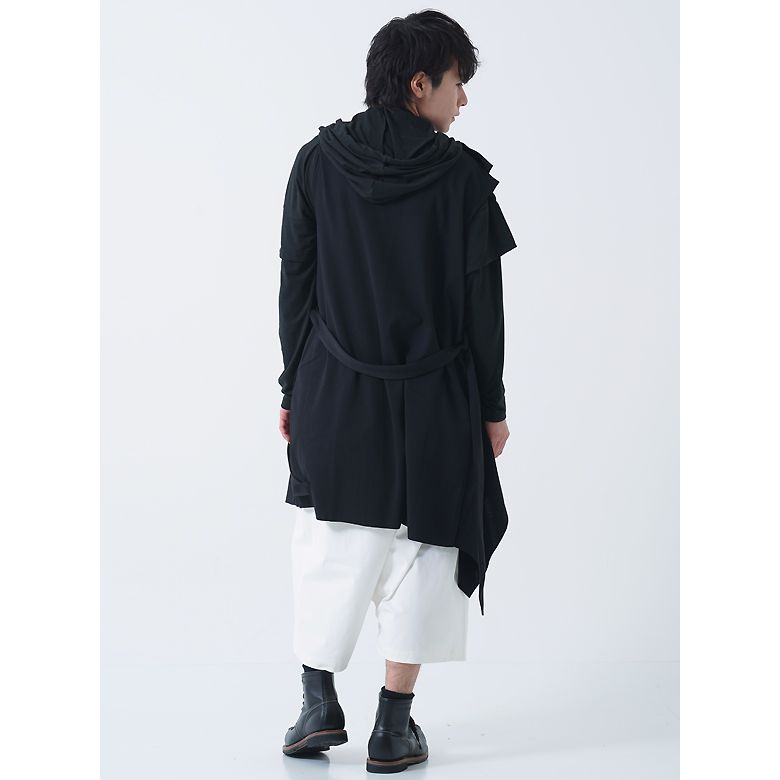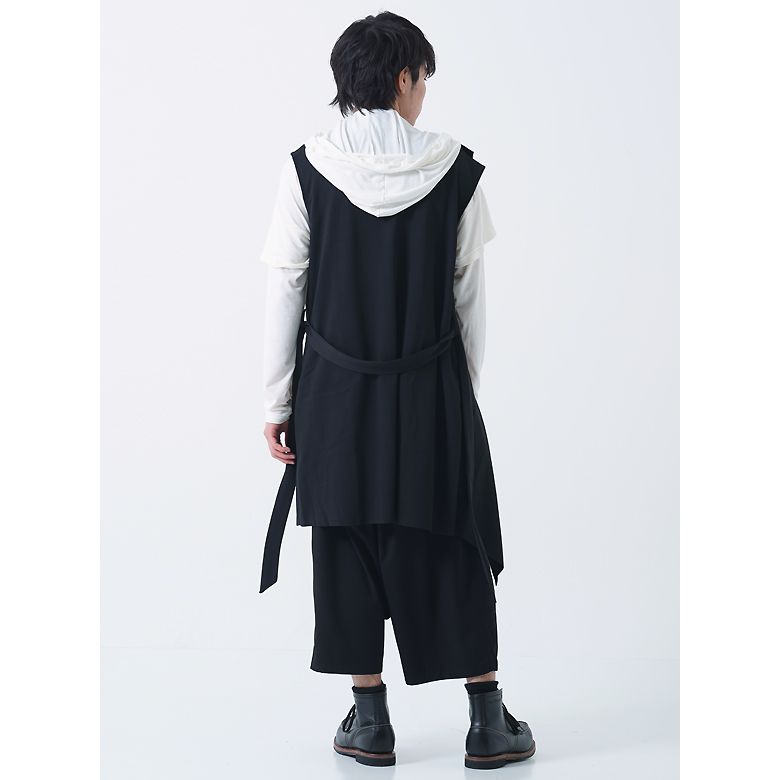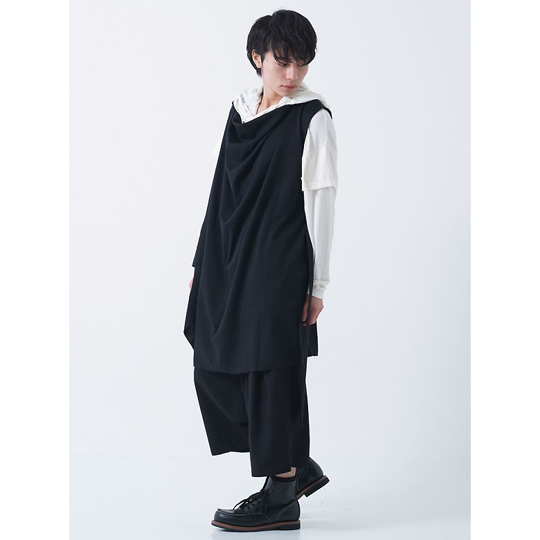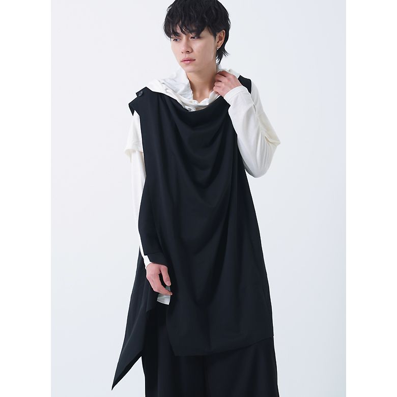 ベスト ジレ ロング丈 ドレープネック ビッグシルエット メンズ ブラック AS SUPER SONIC