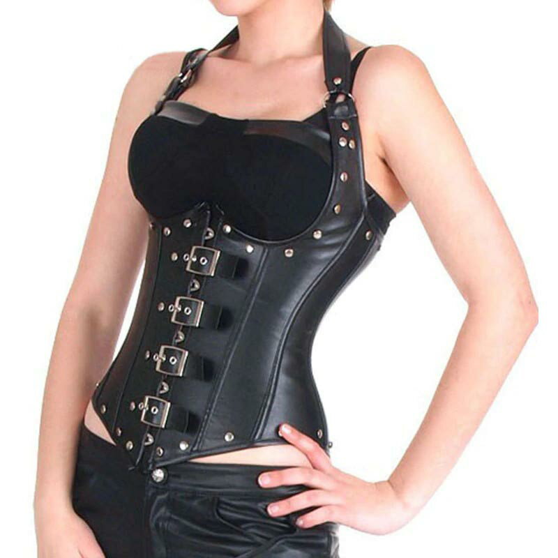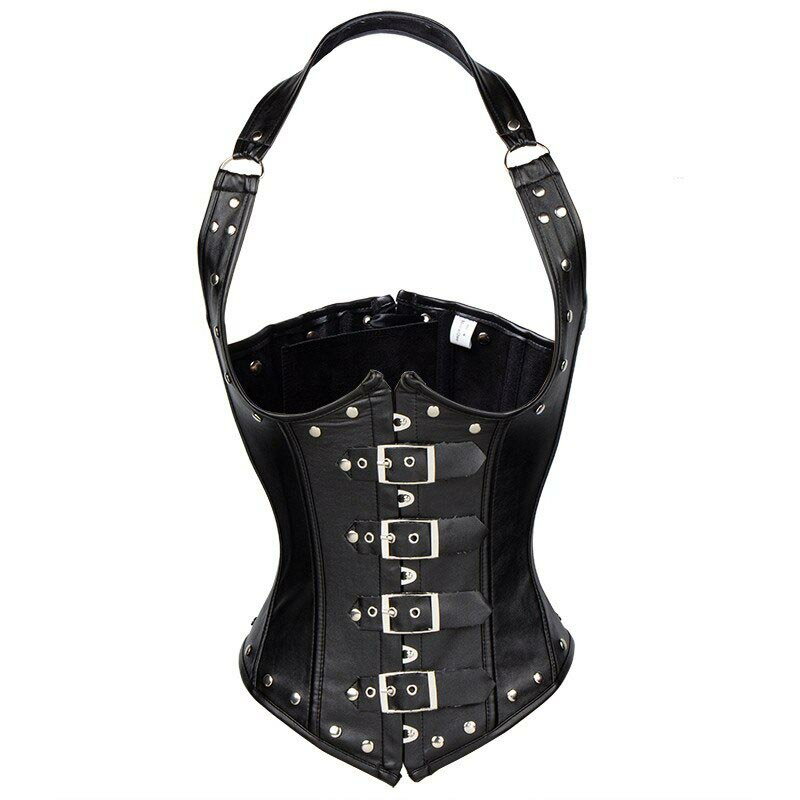 ブラックレザースーツ コルセット S M L 黒色 皮 革 ボディースーツ コスプレ 衣装 補正下着 セクシー コスチューム SM嬢風 ボンデージ 大人 ハロウィン 仮装 ドレス 拘束具 レースアップ オーバーバスト ブラ ベスト ビスチェ ウエスト 仮装 セクシー アダルト レディース